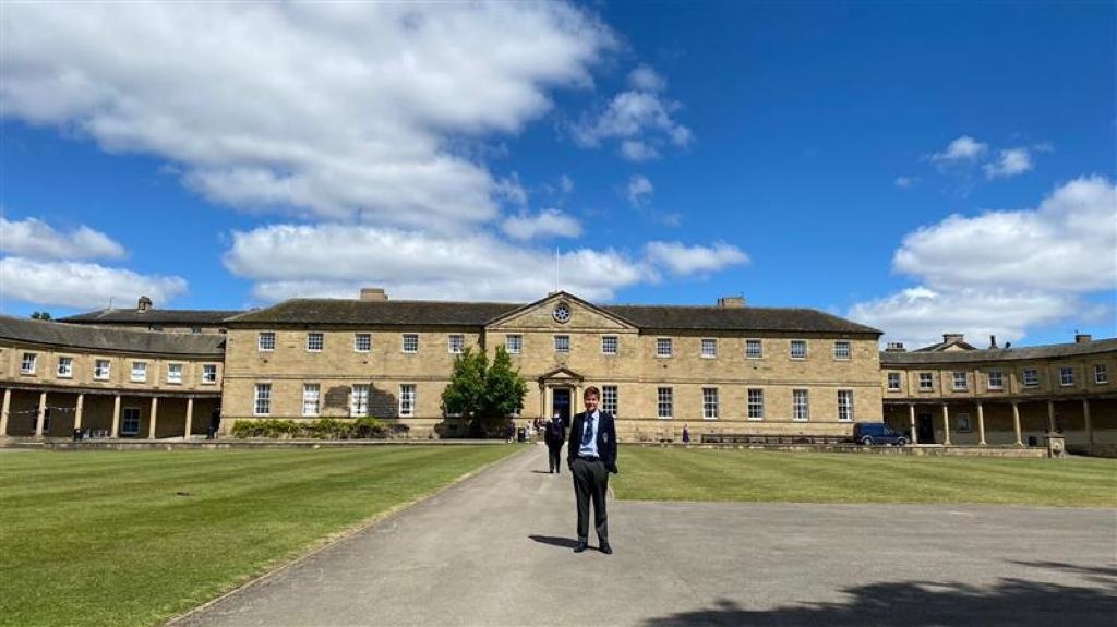 Die Ackworth-School, die ich besuchte, liegt in einem kleinen Ort in der Nähe von Leeds, etwa zwei Stunden Autofahrt vom Flughafen Manchester entfernt. Sie besteht aus mehreren alten Gebäuden mit Innenhöfen und parkähnlichen Plätzen. Es gibt Tennisplätze, Fußballplätze, Schwimmhalle und einen Küchentrakt mit Speisesaal.