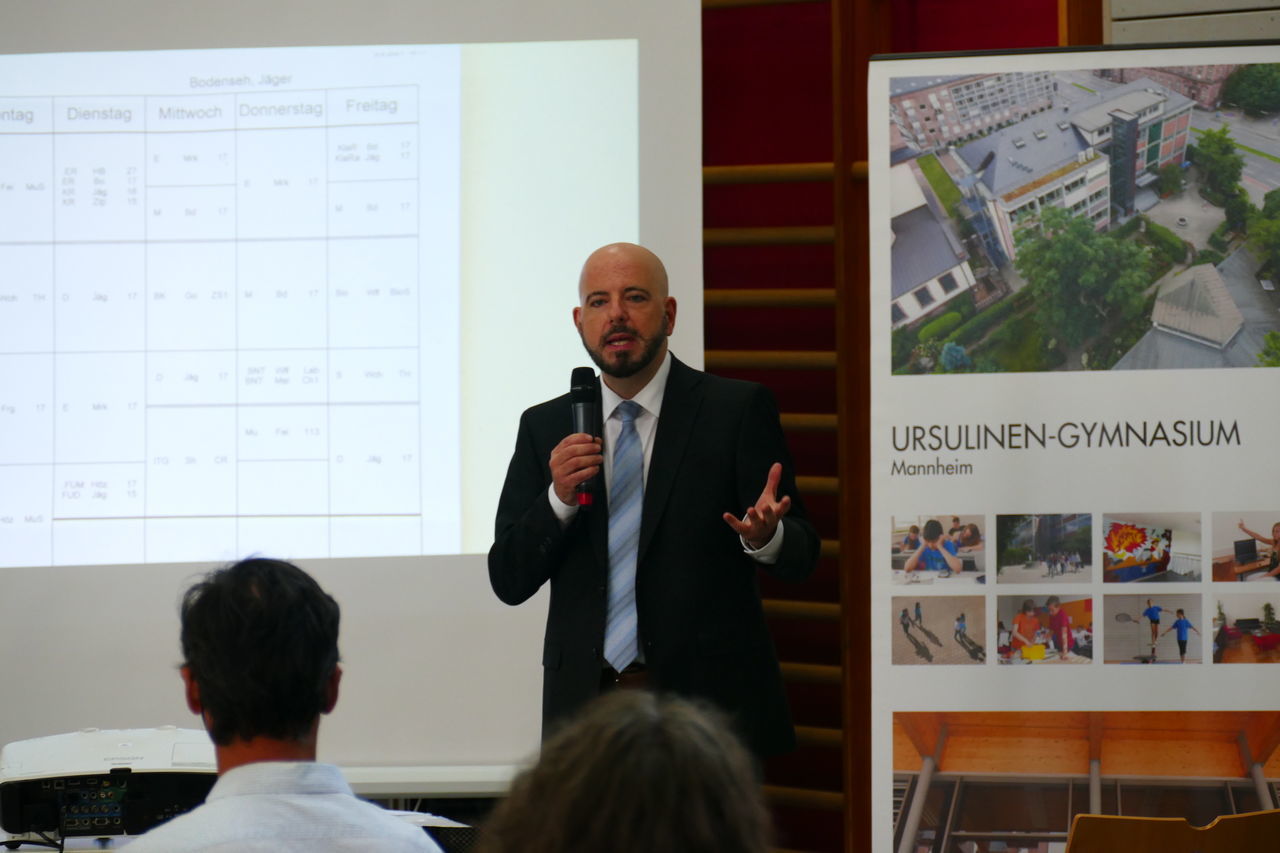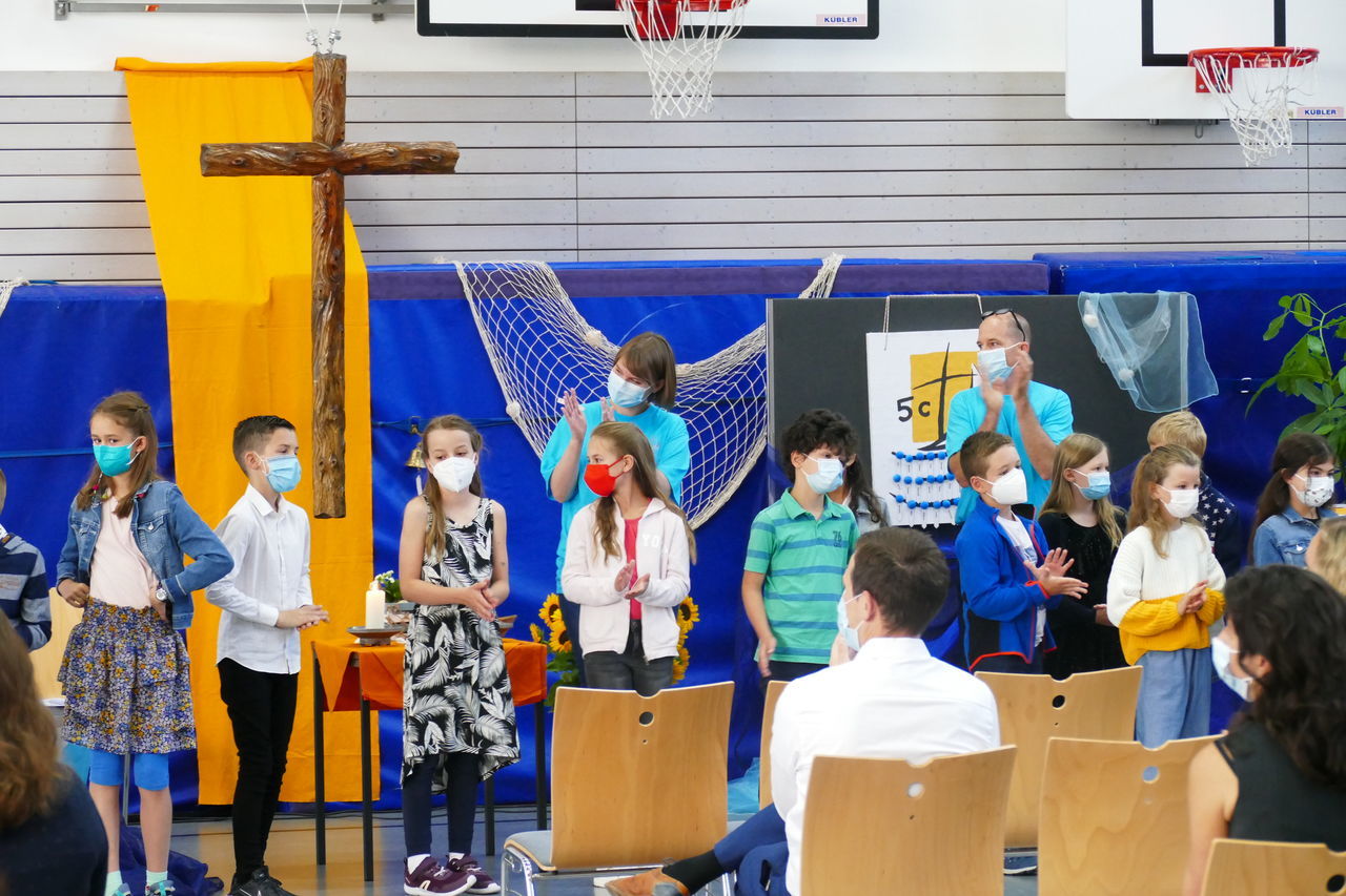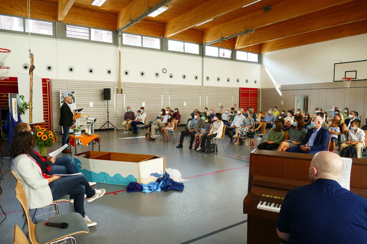 Mit drei feierlichen Zeremonien in der Turnhalle wurden die drei neuen Klassen am UGM heimisch. In einem kleinen Gottesdienst, angeleitet von Frau Nunn und Herrn Ohl, fand die Aufnahme einen rituellen Rahmen. Dieser Rahmen mochte auch den Eltern bewusst machen, dass die Aufnahme am Gymnasium mit wieder ein wenig mehr Loslassen ihrerseits einhergehen darf.