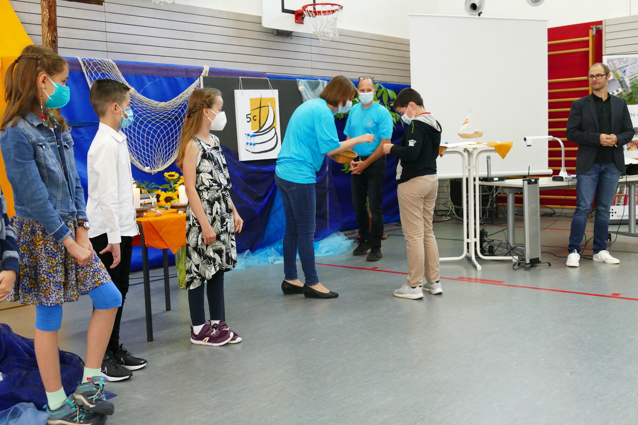Und so brachten die Neulinge am Schiff ihrer Klasse jeweils symbolisch eine Schraube mit ihrem Namen an. Wir freuen uns über die jungen neuen Schülerinnen und Schüler, deren ganz individuelle Talente im bevorstehenden Jahr und natürlich auch in den folgenden Jahren mindestens ihrer Klasse, vielleicht sogar uns allen zugute kommen werden.