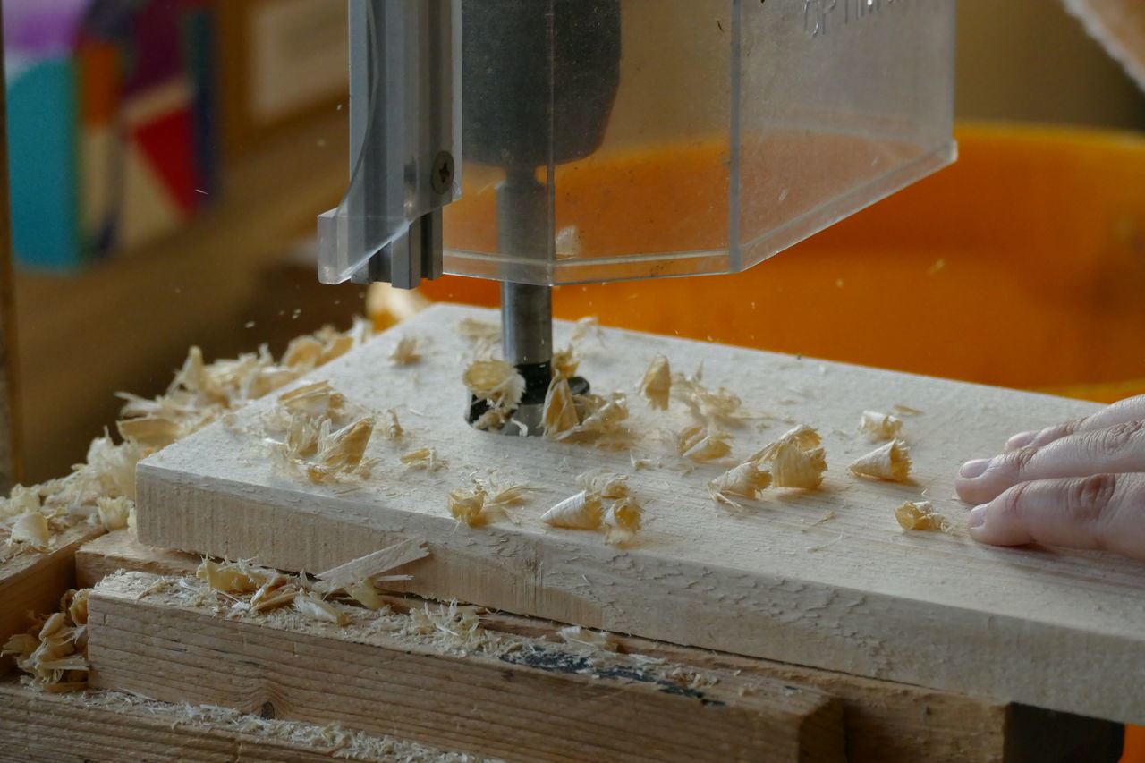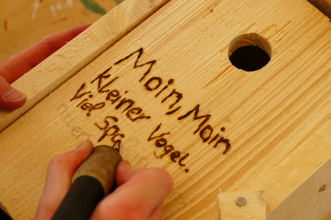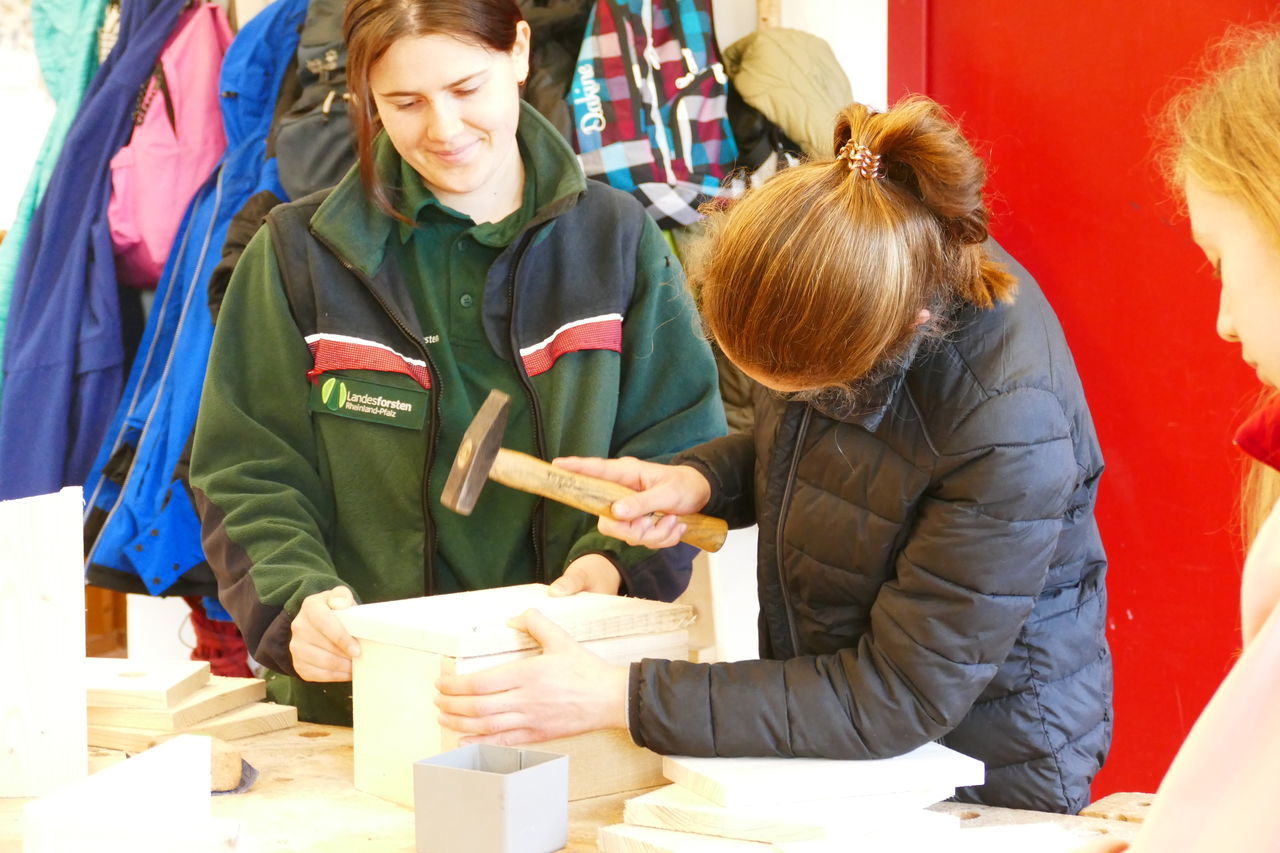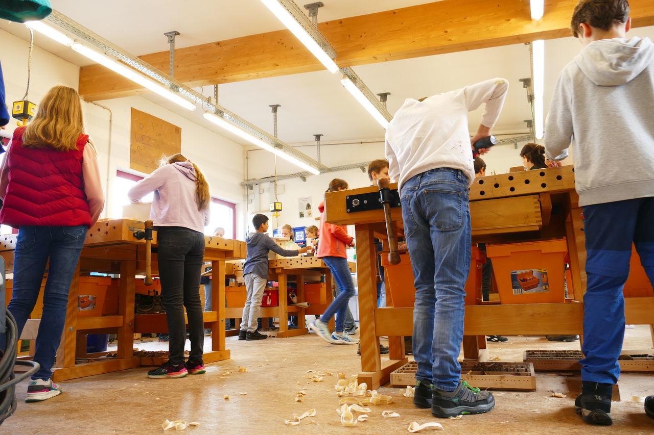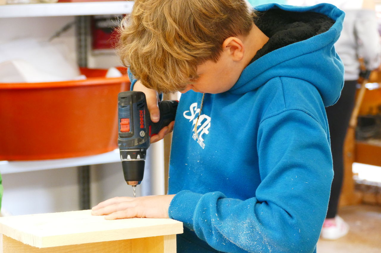 Mit neuer Energie starteten wir in den zweiten Tag. Nach dem Frühstück ging es ab in die Holzwerkstatt. Dort konnten wir unserer Kreativität freien Lauf lassen. Wir bauten unsere selbst entworfenen Nistkästen.