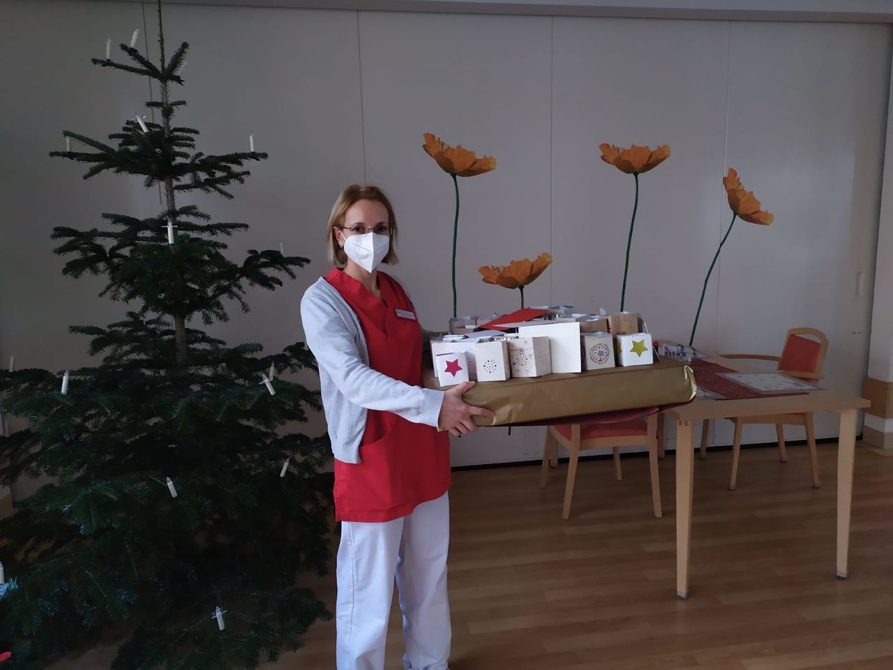 Zum Glück hat uns Frau Schürle (Sozialpädagogin in Maria Frieden) unterstützt und die Laternen in den Wohngruppen verteilt. Die Senioren haben sich sehr darüber gefreut.