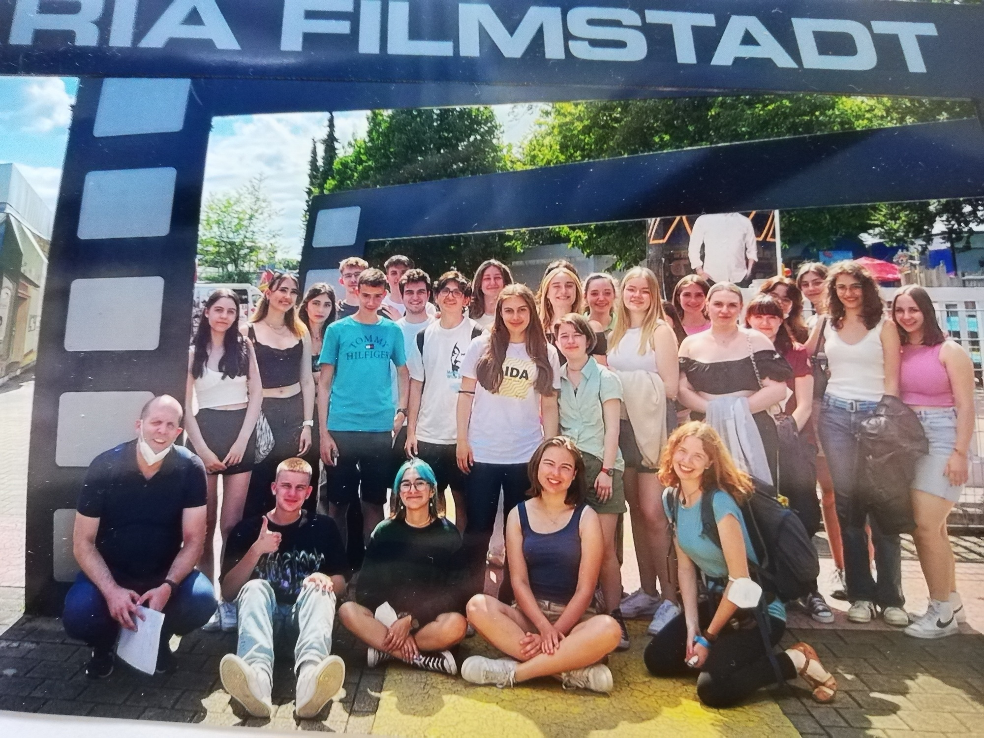 Um allerdings nicht allzu sehr in traurige Stimmung zu verfallen, besuchten wir danach noch die Bavaria Filmstudios, wo wir - erstaunlicherweise - auf die Abschlussklasse in Begleitung von Frau Franger trafen. Wir durchliefen einige Filmsets und durften uns sogar einen kurzen 4D-Film anschauen. Dies war für viele eine willkommene Ablenkung nach den dunkleren Themen am Anfang des Tages. Da wir für den Abend noch eine Abschlussparty für Frau Marré geplant hatten, sprintete das Planungsteam danach los in Richtung Stadt, um noch Getränke für den Abend zu besorgen. Der Weg zum Englischen Garten, wo das Event steigen sollte, war etwas chaotisch, aber wir hatten viel Spaß und die Stimmung war gut. Nachdem auch die Entgegennahme der bestellten Pizza erfolgreich über die Bühne gegangen war, verbrachten wir einen wunderschönen Abend mit Kneipeinlage im Eisbach, Lachen und Musizieren. Dies war ein gelungener Abschluss für unsere Fahrt, auch wenn wir gerne noch länger geblieben wären.