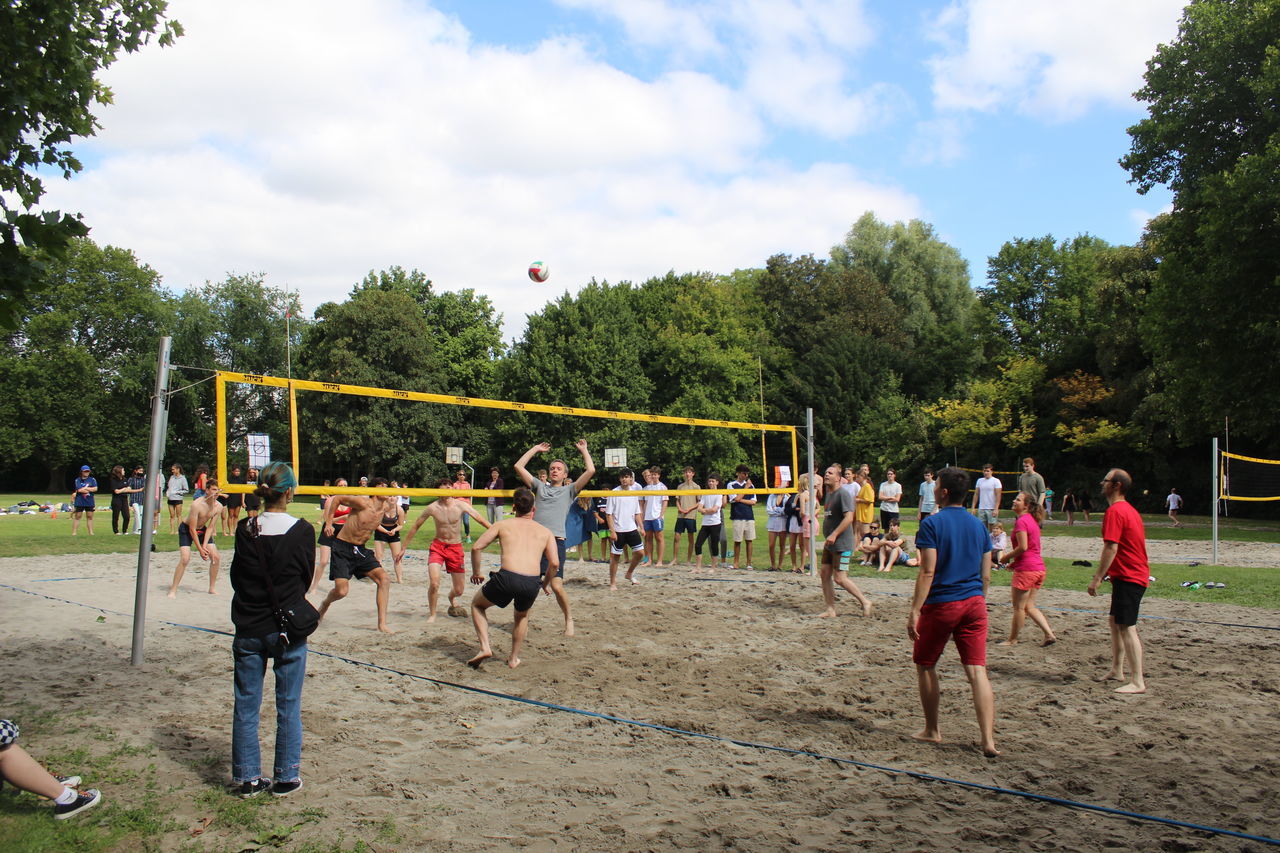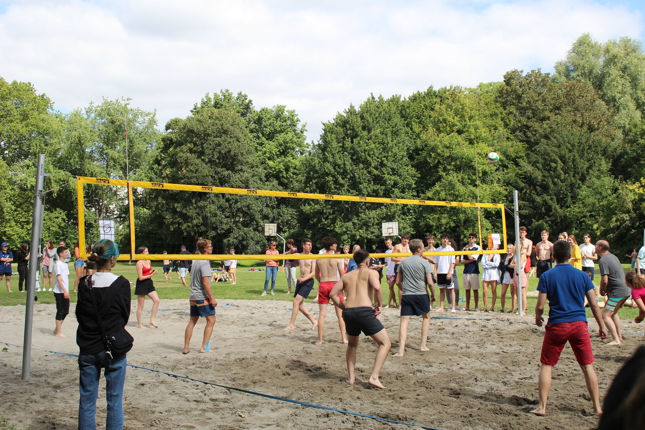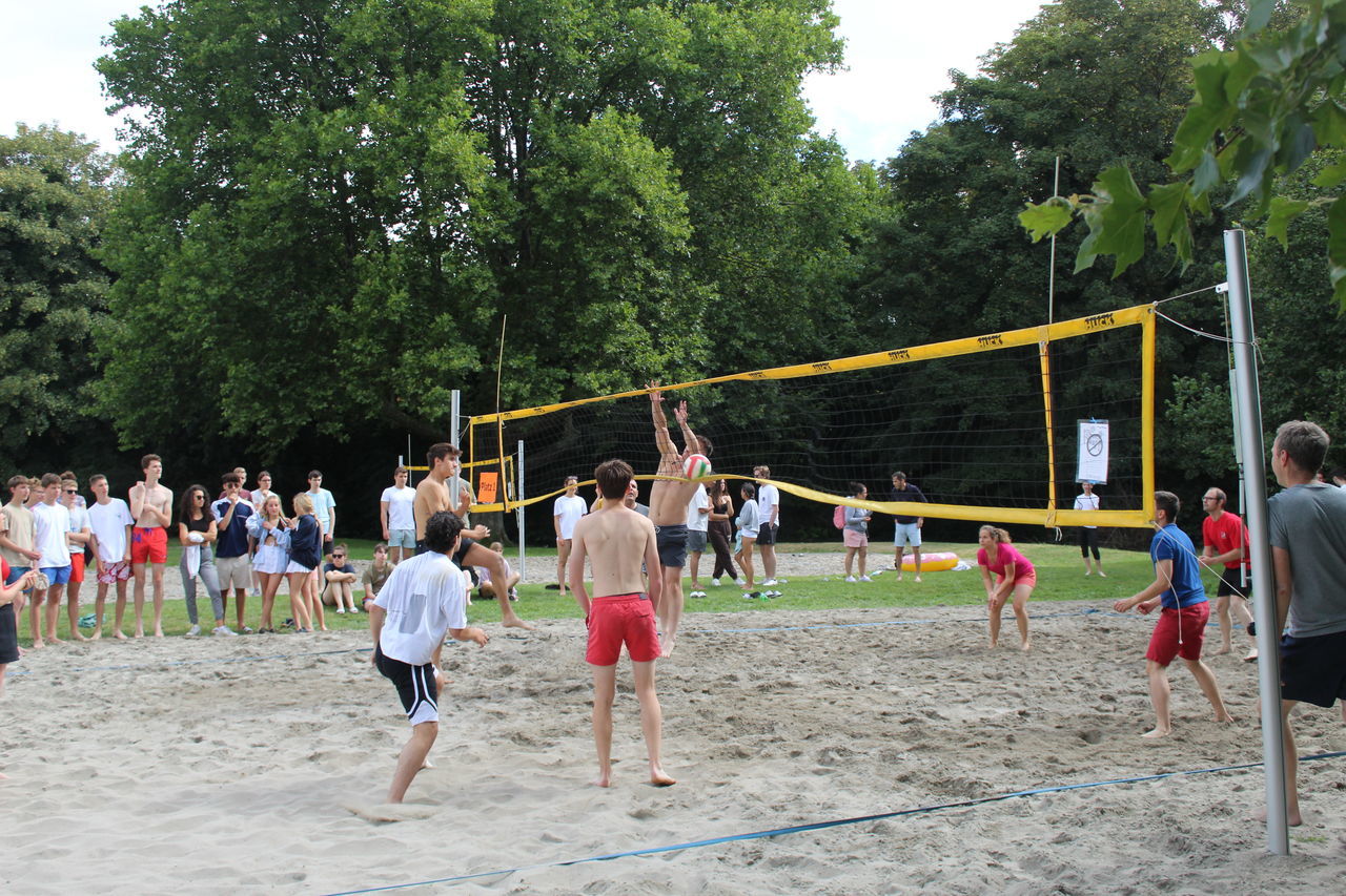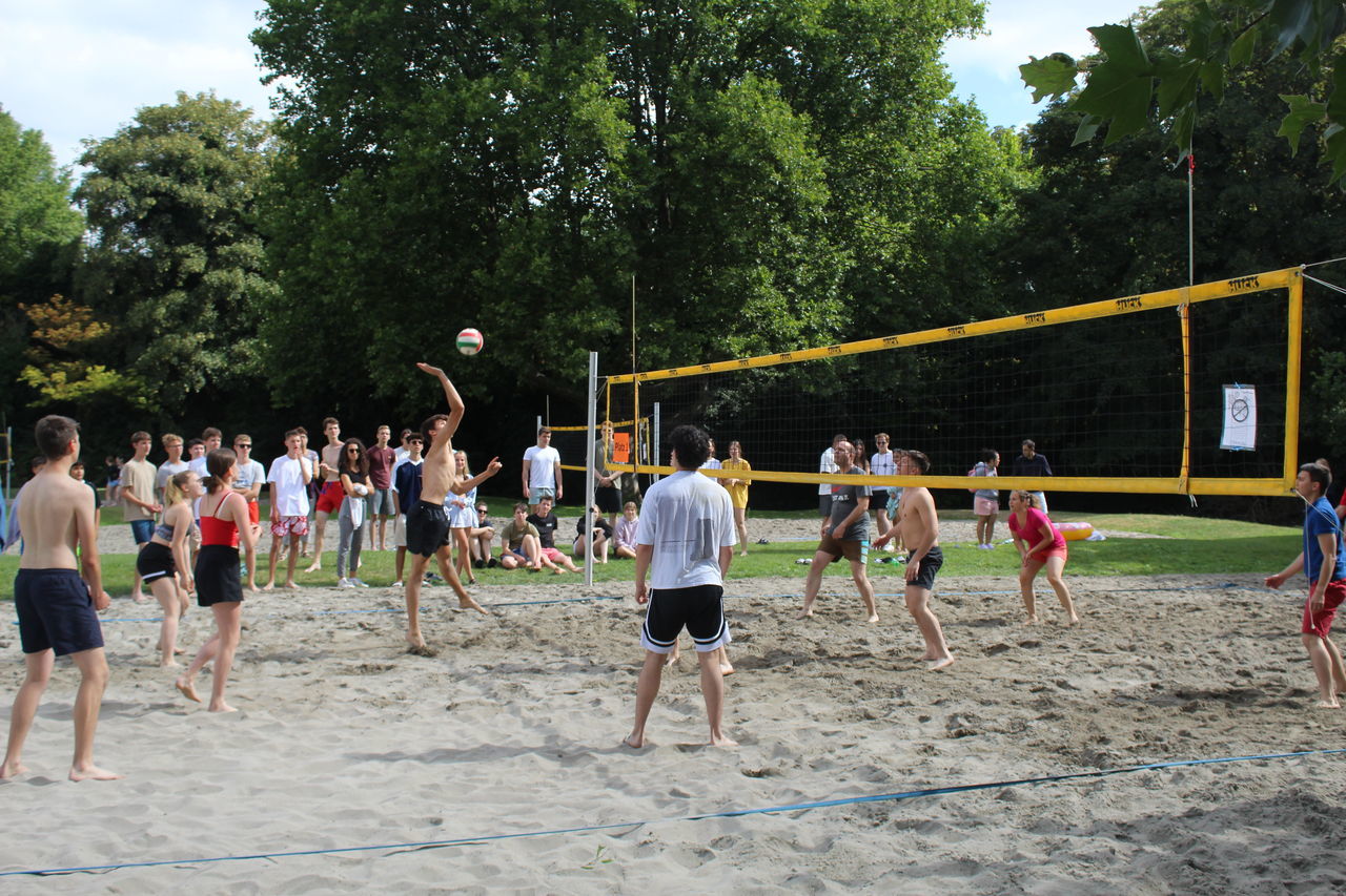 Parallel dazu fand das Beachvolleyballturnier der Klassen 8 bis 12 statt, dank der Organisation und Durchführung von Bastian Walter aus der Kursstufe 11. Alle Mannschaften bewiesen, so Herr Botsch, „beeindruckenden Körpereinsatz und Hingabe“, wobei die Krönung und ein großer Spaß das Spiel des Gewinnerteams gegen das Lehrerteam war, bei dem letztere nur ganz knapp gewannen.