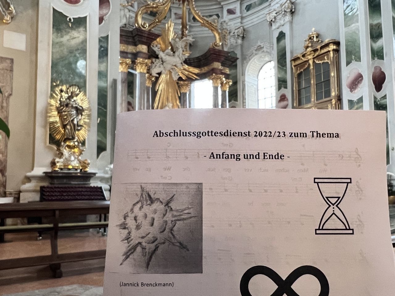 Zu dieser Erkenntnis führte der am letzten Schultag in der Jesuitenkirsche abgehaltene Abschlussgottesdienst mit dem Thema „Anfang und Ende“, mit dem unsere Schulgemeinschaft das Schuljahr 2022/23 ausklingen ließ.