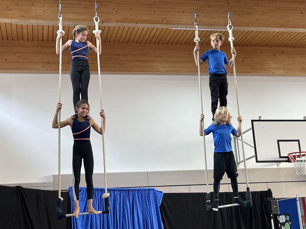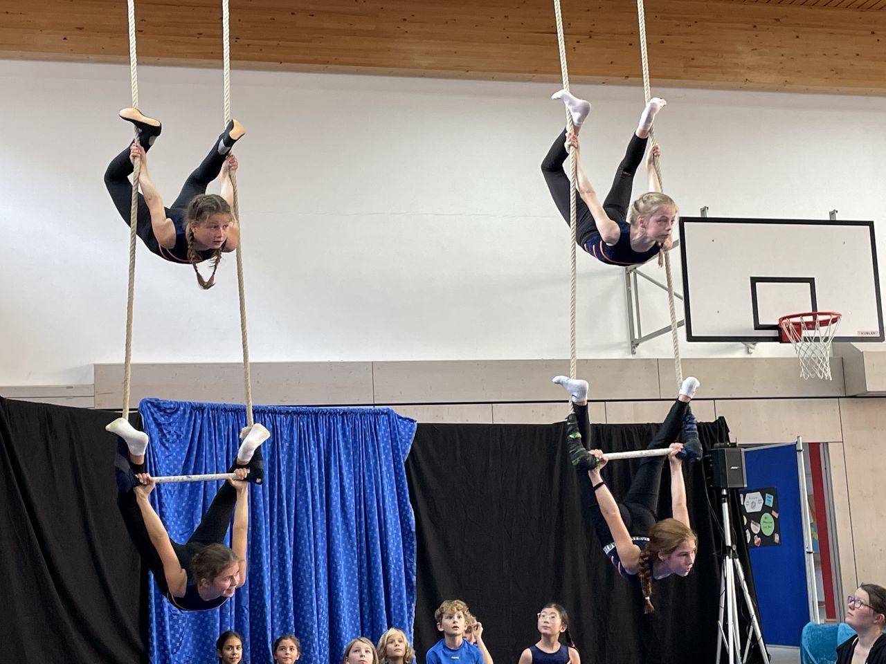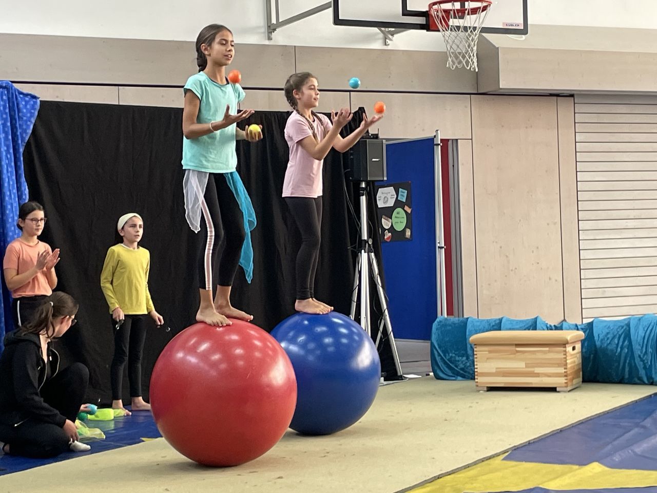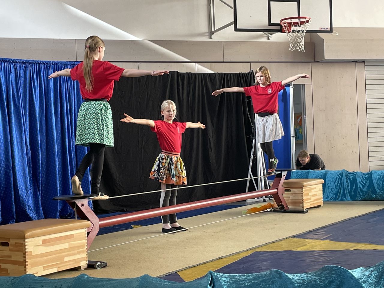 Da sich alle Klassen trotz der Herausforderungen bestens bewährten, wurden die Zirkusshows am Freitagnachmittag zum gelungenen Höhepunkt der Woche. Nachdem der Zirkusdirektor oder die -direktorin die Manege freigegeben hatte, beeindruckten die Stars ihr Publikum in fantasievollen Nummern mit anspruchsvollen Kunststücken und erhielten dafür wohlverdienten und begeisterten Applaus.
