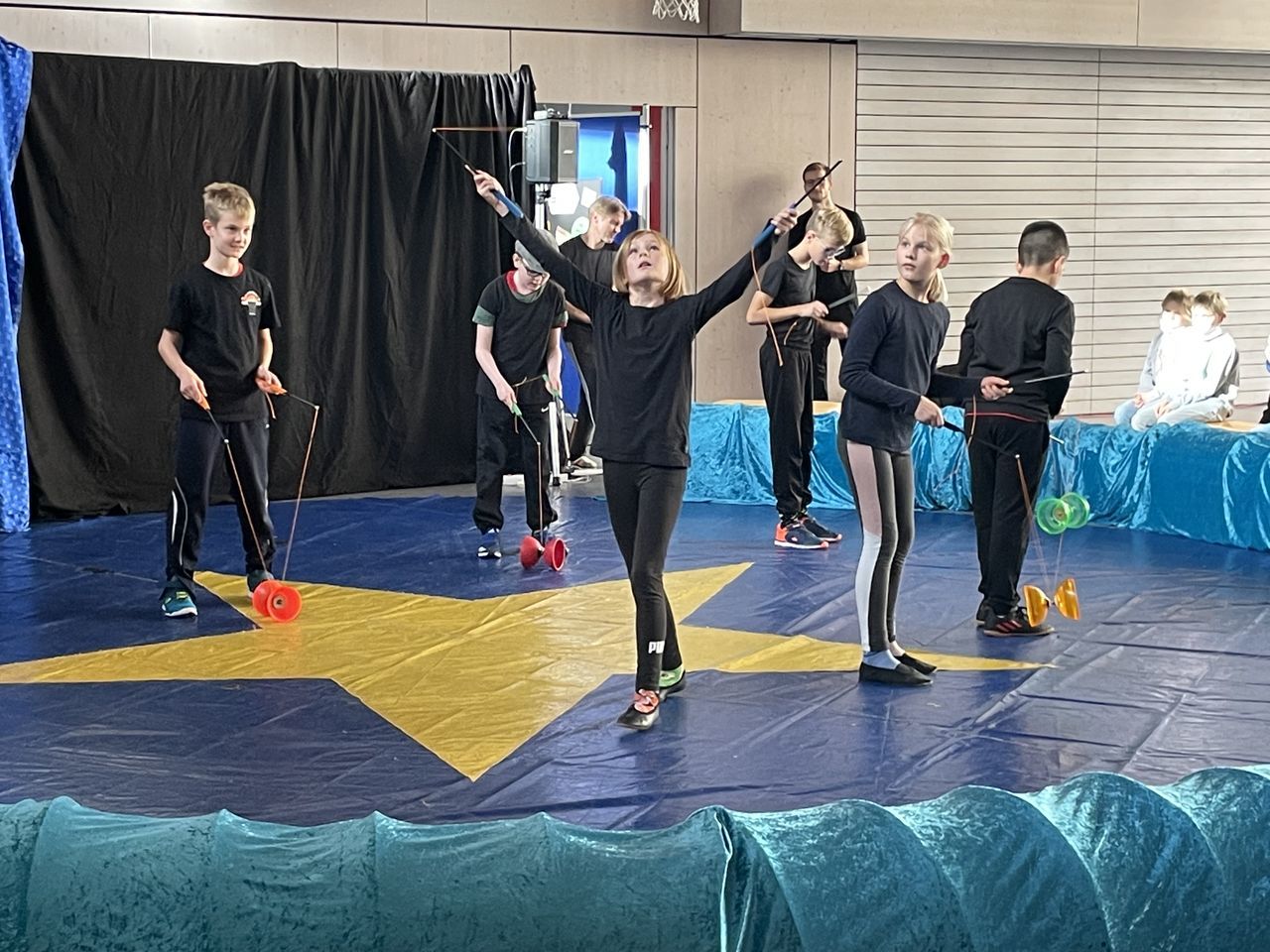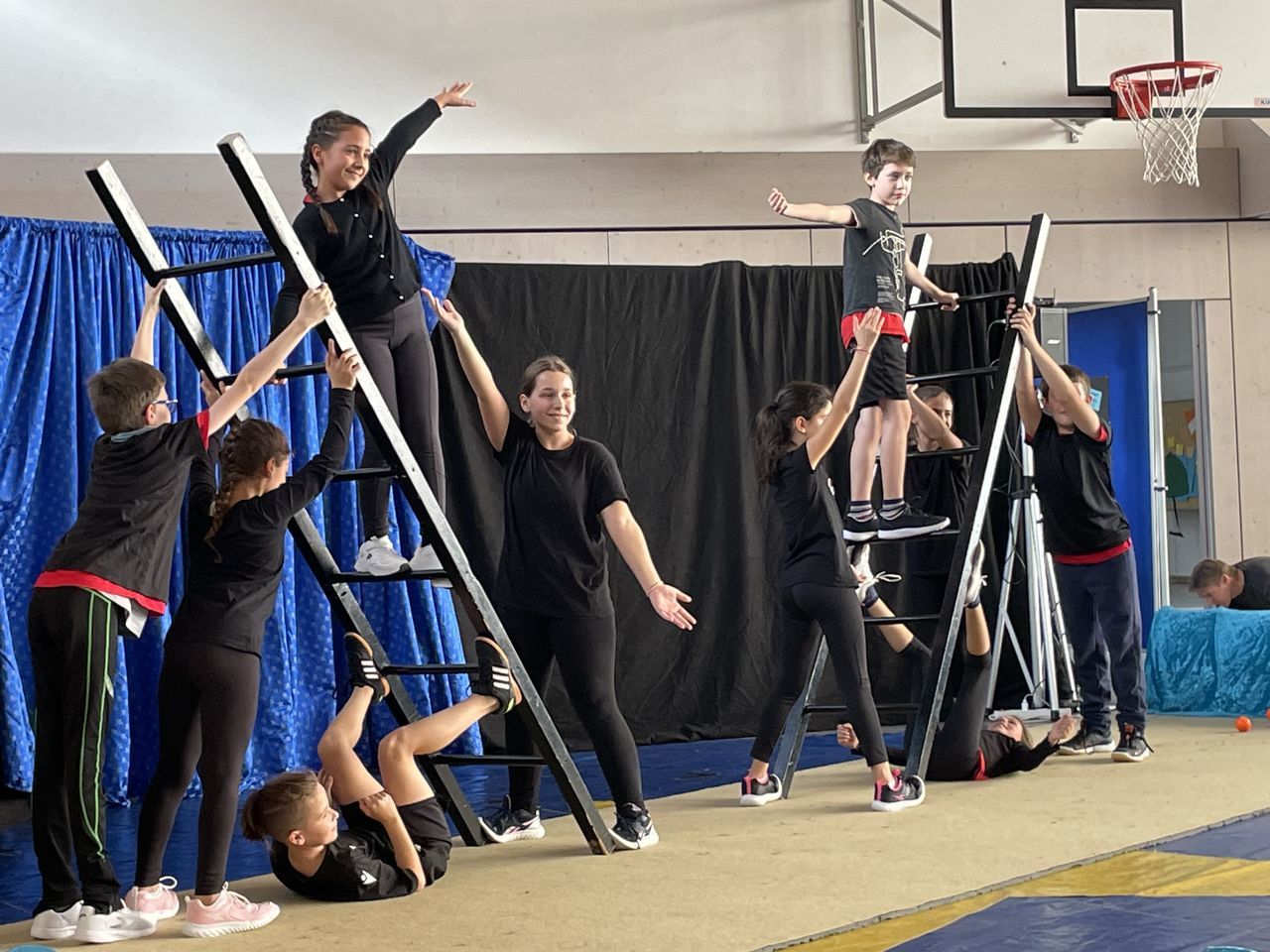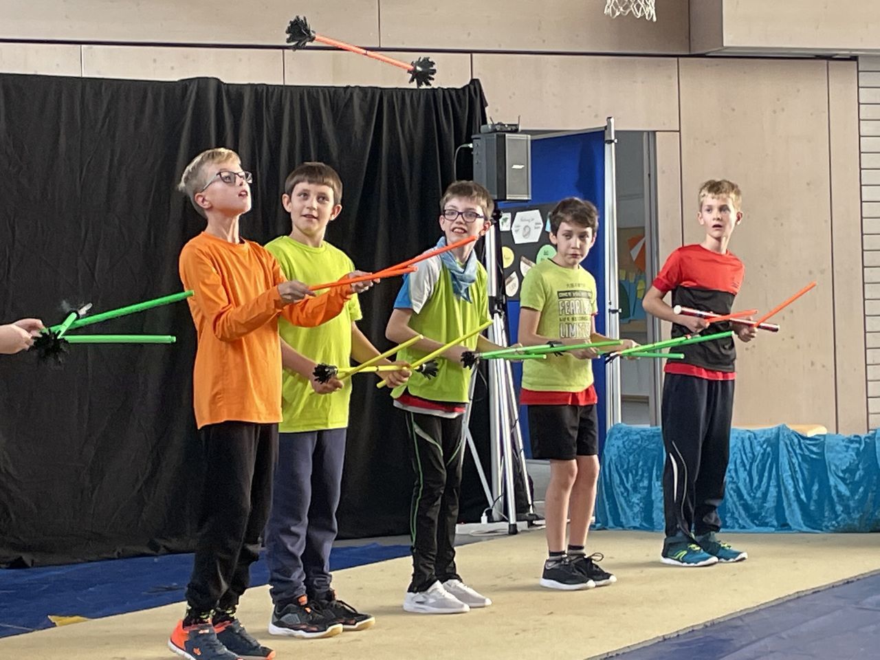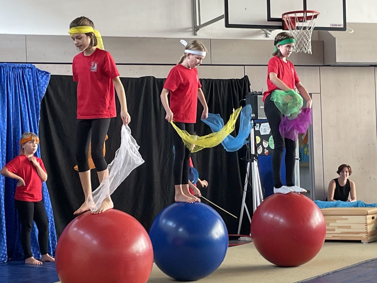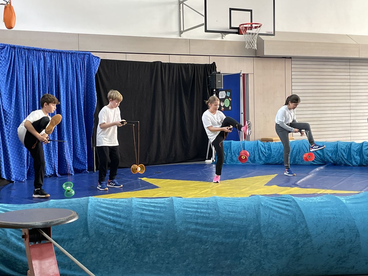 Da sich alle Klassen trotz der Herausforderungen bestens bewährten, wurden die Zirkusshows am Freitagnachmittag zum gelungenen Höhepunkt der Woche. Nachdem der Zirkusdirektor oder die -direktorin die Manege freigegeben hatte, beeindruckten die Stars ihr Publikum in fantasievollen Nummern mit anspruchsvollen Kunststücken und erhielten dafür wohlverdienten und begeisterten Applaus.