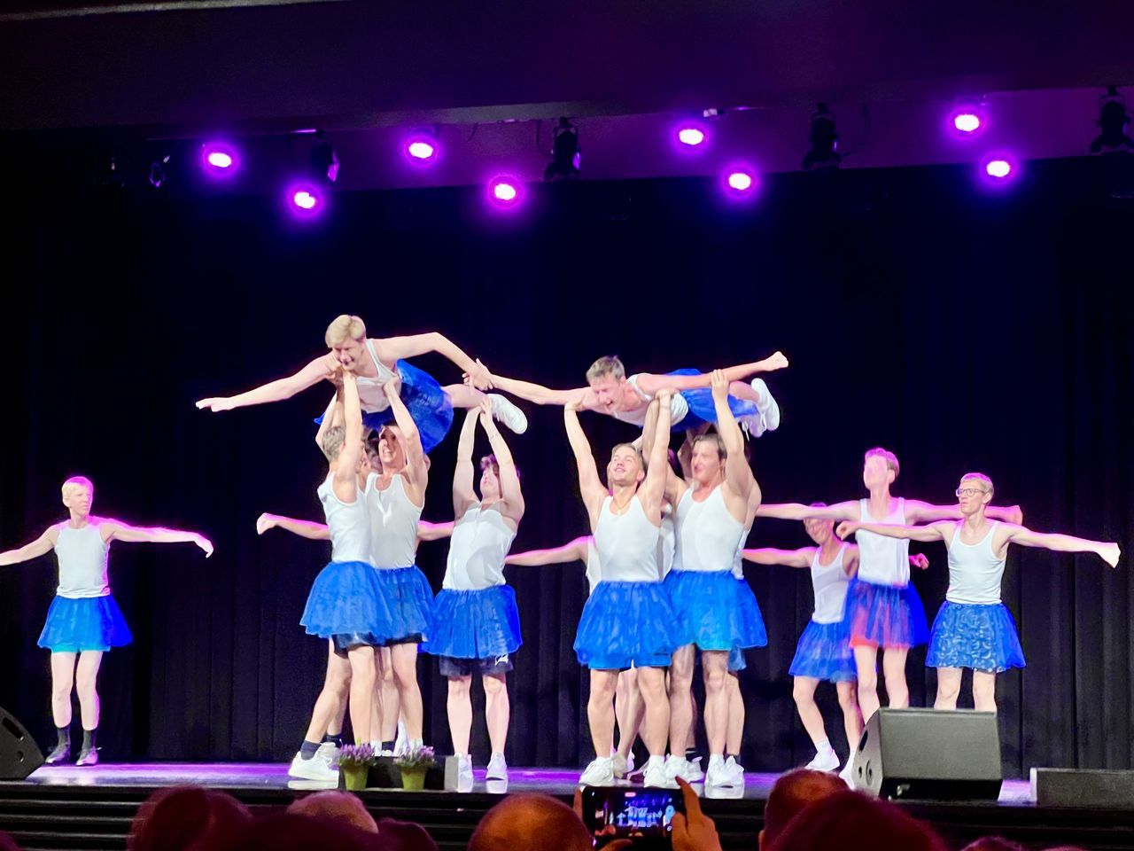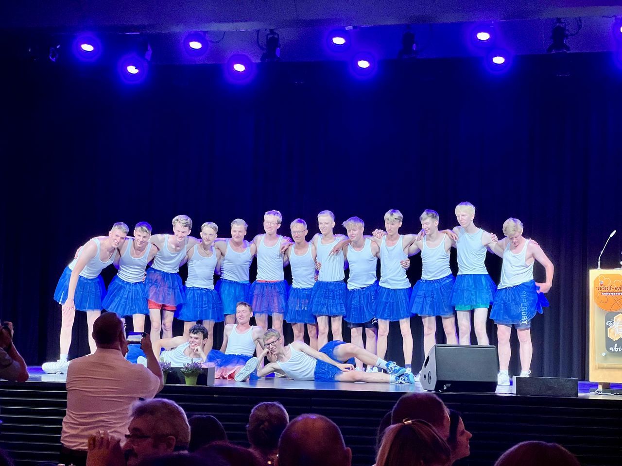 Oskar Szathmáry sowie auch Helene Schuchardt und Seraphine Leverkus bildeten nicht nur bei der Entlassfeier, sondern auch beim Abiball mit ihren musikalischen Talenten den feierlichen Rahmen. In der Rudolf-Wild-Halle in Eppelheim luden die Abiturientinnen und Abiturienten am Samstag, dem 22. Juli zum Abiball ein. Die Abienchen, allen voran die Organisatorin Nadine Baitinger, hatten sich und den Festsaal fleißig geschmückt, sodass das reichhaltige Programm genossen werden konnte. Und auch hier summten die Abienchen fröhlich musisch umher: Ivan Sako überzeugte am Flügel und die Kursstufe vollführte einen Tanz, den Daria Rusakowski choreografierte – samt Hebefigur aus „Dirty Dancing“, die auch das Männerballett perfektioniert hatte. Und zwar so gut, dass die in blauem Tütü gekleideten Männer eine Zugabe geben durften und wiederholt zu Backstreet Boys und Spice Girls-Rhythmen die Hüften schwangen.