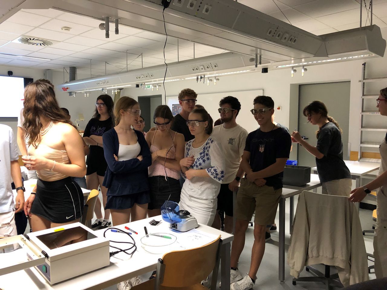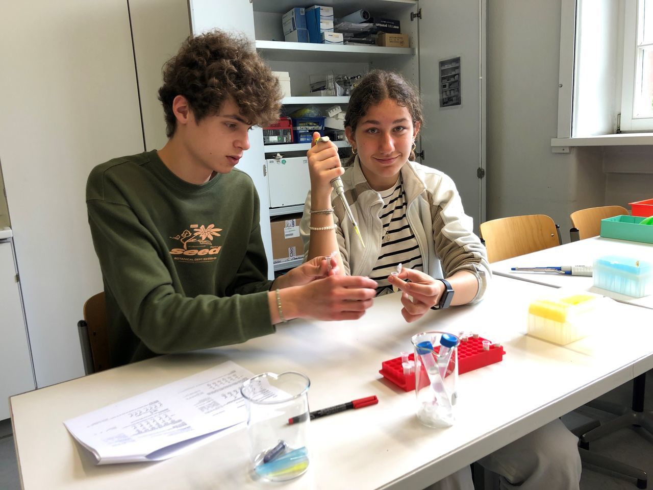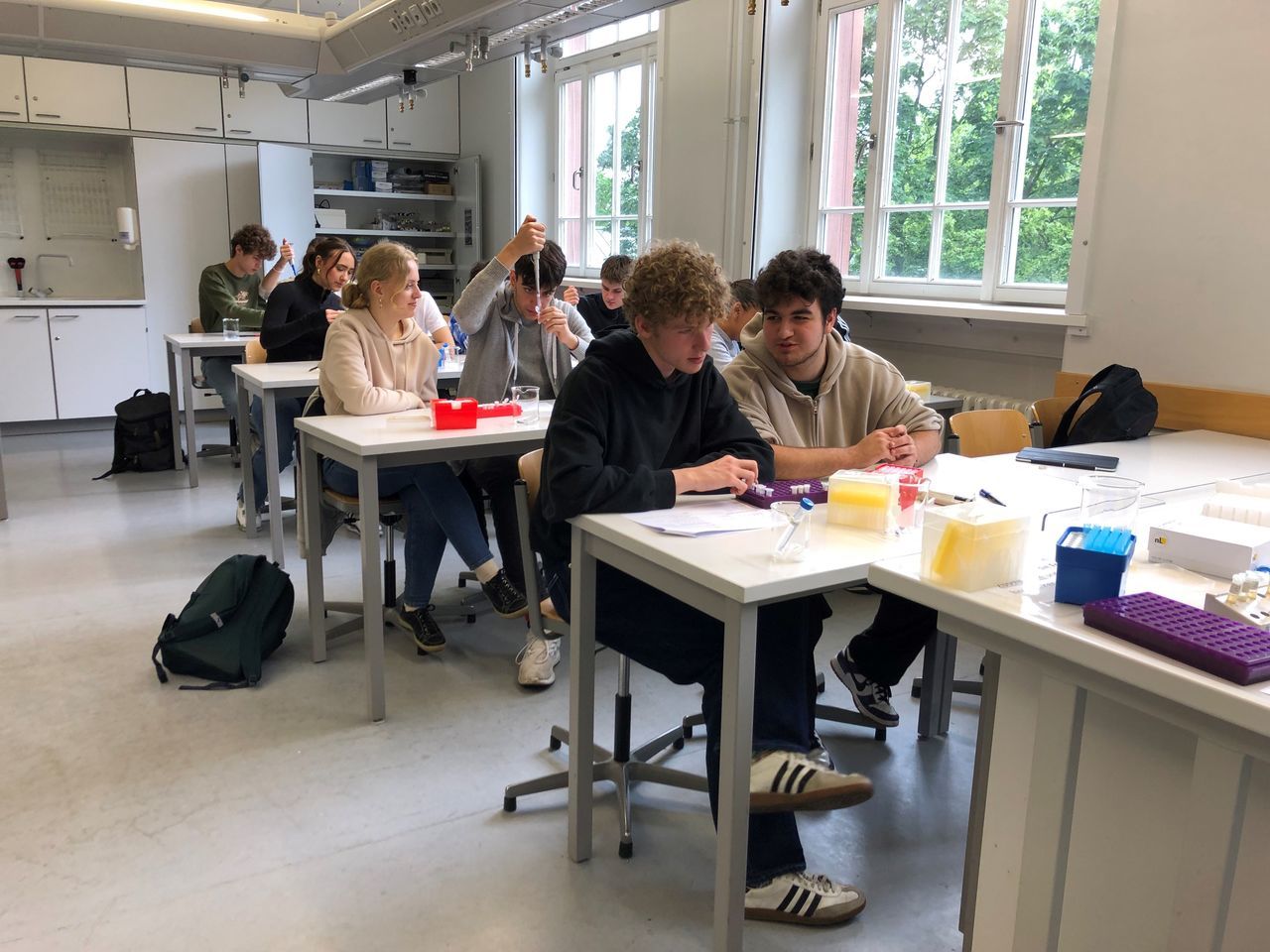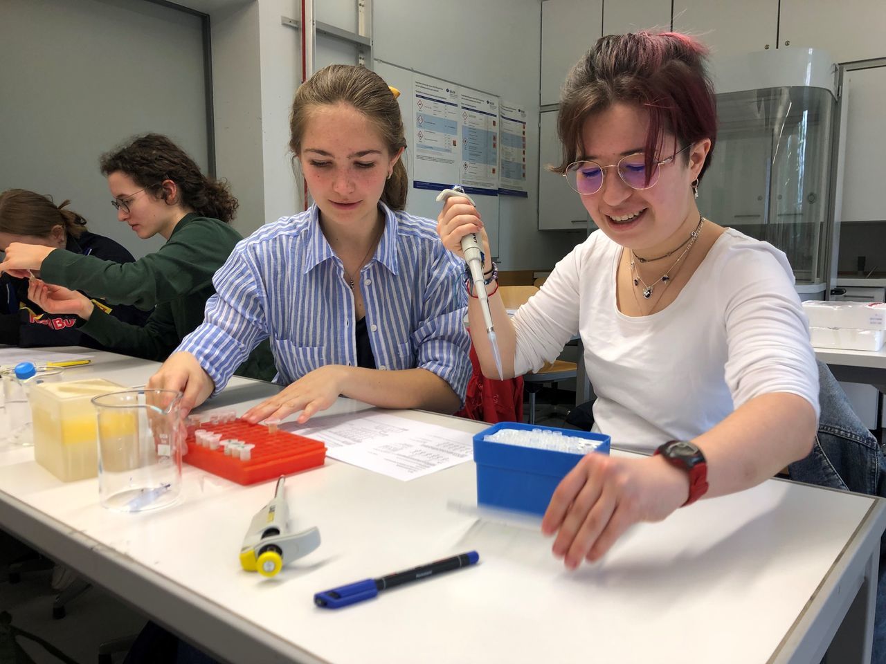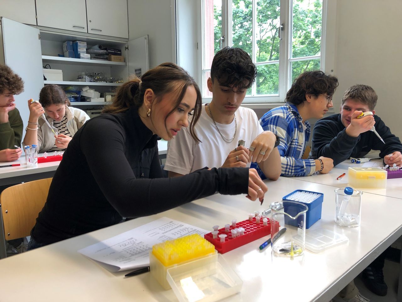 Zum einen ging es um das Thema Genregulation und zum anderen durften die Schüler*innen einen Vaterschaftstest durchführen. Dabei konnten sie bekannte gentechnische Verfahren wie beispielsweise eine PCR anwenden. Neben praktischer Erfahrung in der Laborarbeit, nehmen unsere Schüler*innen vor allem vertieftes Fachwissen mit nach Hause und Spaß hat es ganz nebenbei auch gemacht.