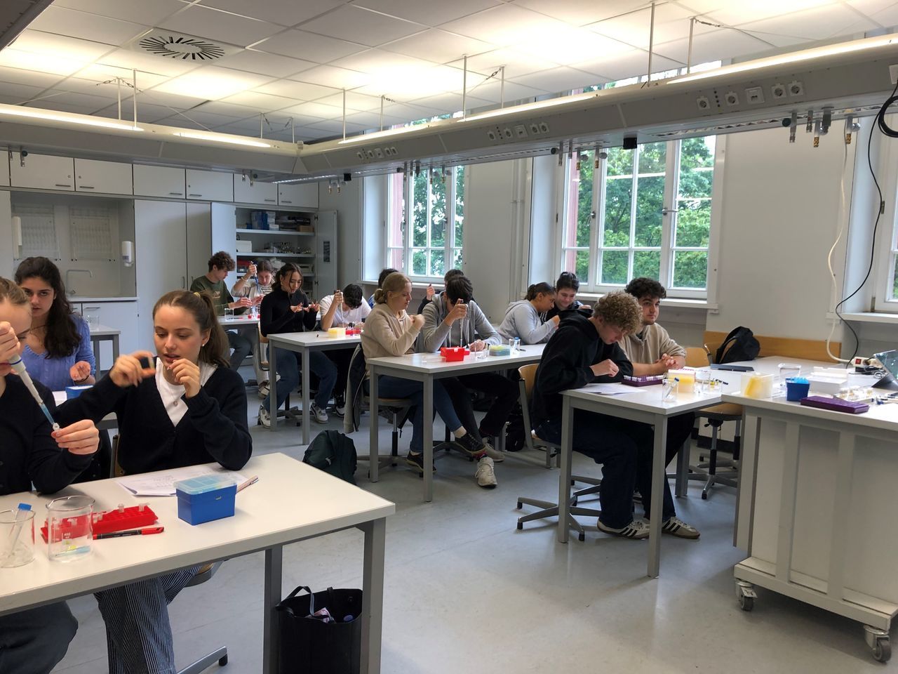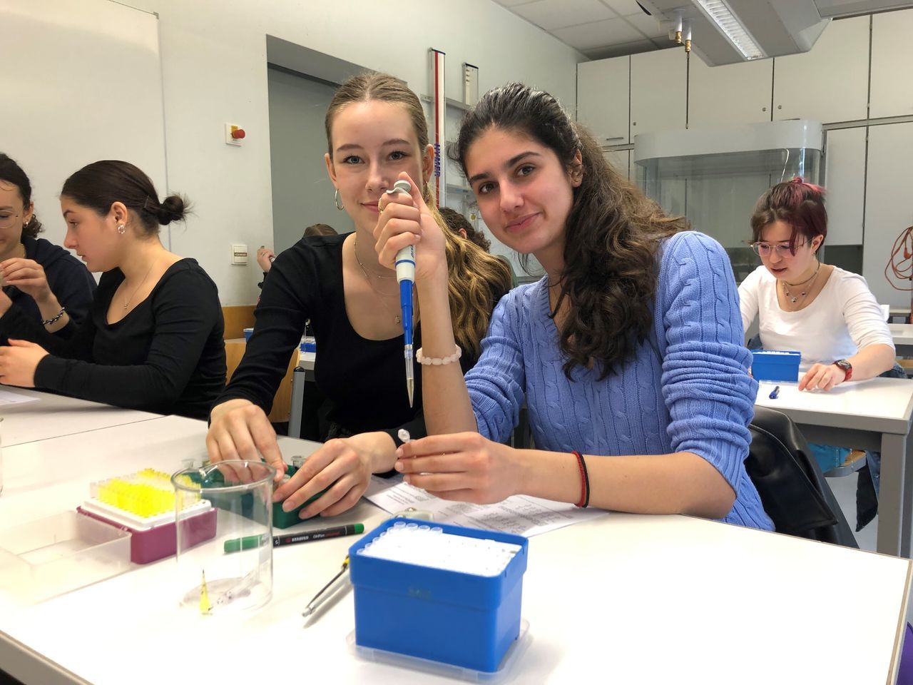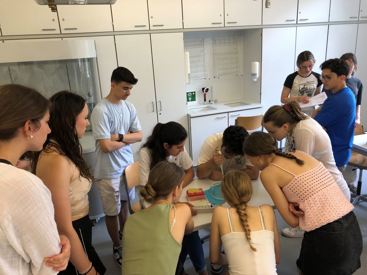 Schülerinnen und Schüler des Biologie Leistungskurs der KS1 konnten ihr Wissen aus dem Unterricht in zwei Praktika an der Stützpunktschule für Molekularbiologie am Gymnasium Feudenheim in der Laborpraxis umsetzen.