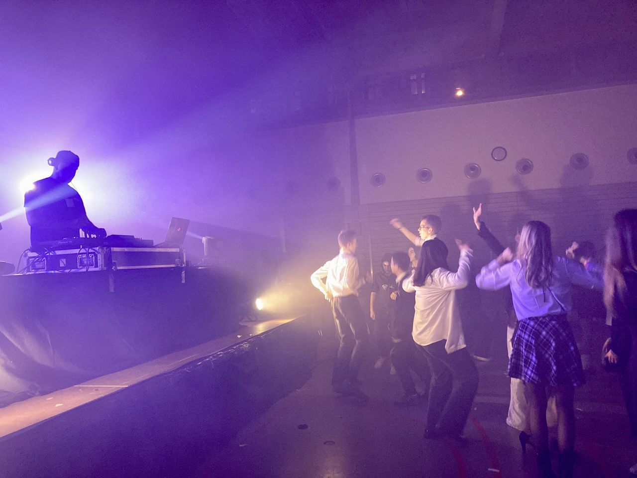 Am Abend sorgten die beiden DJs Mark Etz und DJW für großartige Musik. Es war für jeden Geschmack etwas dabei. Zu Liedern von "I´m Good" (David Guetta) bis "Bye, Bye" (Cro) tanzten viele Schülerinnen und Schüler ausgelassen und hatten einen schönen Abend. Die Technik-AG brachte mit ihrer fantastischen Beleuchtung trotz des Dresscodes Farbe ins Event.