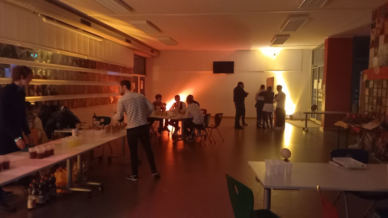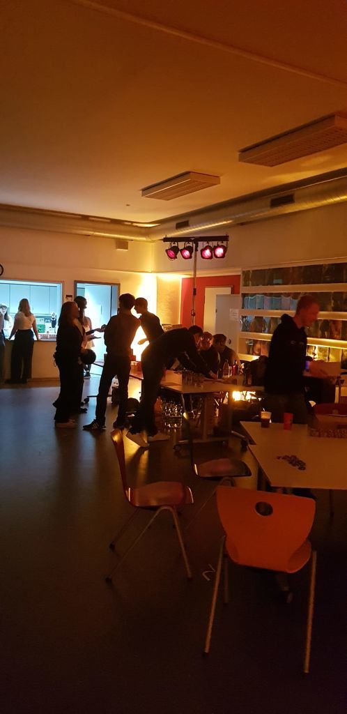 Die Kursstufen 1 und 2 waren für die kulinarische Verpflegung der Partybesucher verantwortlich und haben für Getränke und leckeres Essen gesorgt. Während die KS2 verschiedene Säfte und Limonaden verkaufte, bot die KS1 Hotdogs und natürlich auch eine vegetarische Alternative an. Dieses Angebot kam nicht nur den durch das ausgelassene Tanzen sehr durstigen und hungrigen Schülerinnen und Schüler zugute, sondern brachte den beiden Kursstufen auch zusätzliche Einnahmen für ihre Abi-Kassen ein.