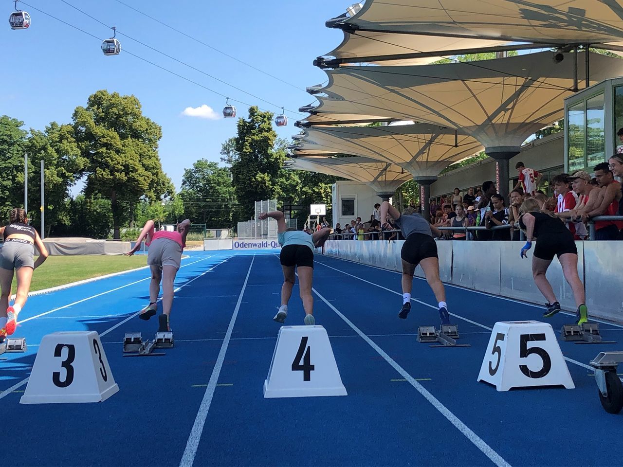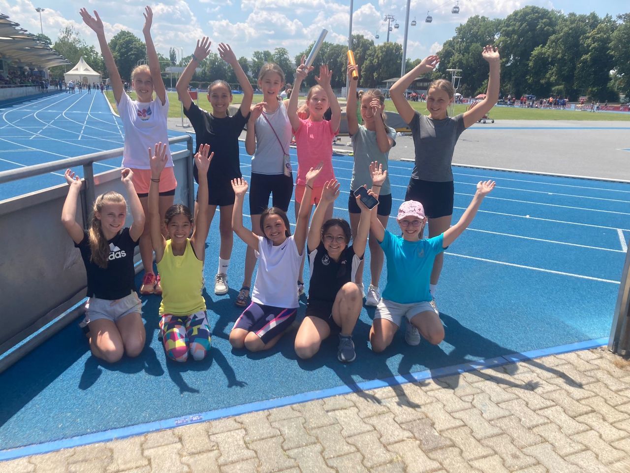In der jüngsten Wettkampfklasse WK IV traten in der Leichtathletik elf Mädchen aus der Klasse 5 bis 7 für das UGM an. Jeweils drei Mädchen gingen bei strahlendem Sonnenschein im Mannheimer Michael-Hoffmann-Stadion in folgenden Disziplinen an den Start: 50 m Sprint, 800m, Weitsprung, Hochsprung, Ballwurf und Staffellauf 4x50m. Der Teamgeist war schnell entfacht und die Mädels feuerten sich gegenseitig zu Bestleistungen an. Zu erwähnen sind die hervorragenden 4,29 m im Weitsprung, die für Sophie Sichert persönliche Bestleistung und eine der besten Weiten im Starterfeld war. Am Ende ließ unsere Mannschaft, die von Frau Schwitalla und Frau Toggas betreut und gecoacht wurde, zwei Teams hinter sich und belegte einen guten 7. Platz. Herzlichen Dank für eure Teilnahme. Es hat Freude gemacht euch zuzusehen!