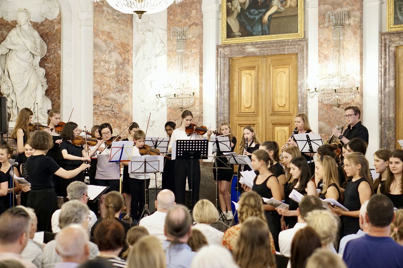 Am 12. Juli 2023 fand das Sommerkonzert des UGM statt. Anlässlich des 75.Jubiläums des UGM war man im Rittersaal des Barockschlosses Mannheim zu Gast. Die prächtigen Räumlichkeiten und die dort herrschende königliche Atmosphäre verliehen dem Programm dieses Jahr ein atemberaubendes Flair.