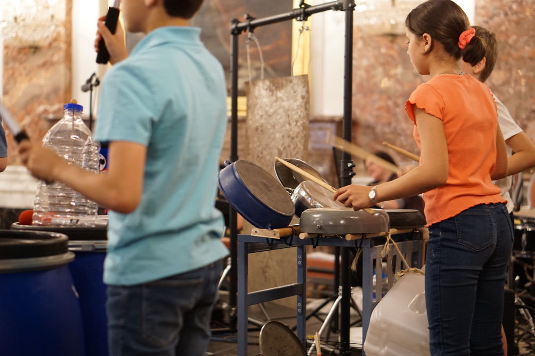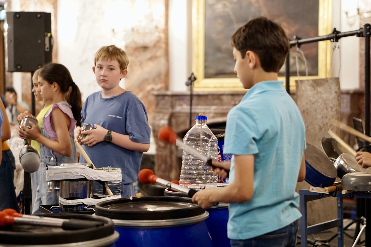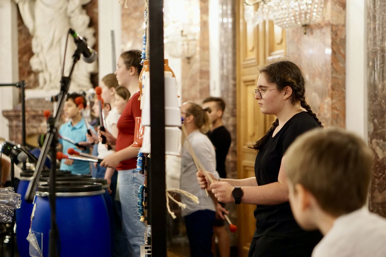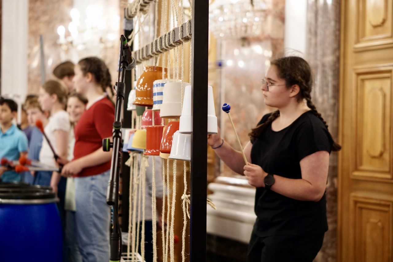 Das Schulorchester, die Streicherklasse und die Chöre des UGM gestalteten ein abwechslungsreiches Programm. Nicht nur der Auftritt im Schloss, sondern auch die Stücke des Upcycling-Orchesters, unter der Leitung von Herrn Grän, waren für eine Schulveranstaltung des UGM bisher einmalig. Allein durch das Upcyclen von gebrauchten Gegenständen und Müll, entstanden neue Instrumente, die das Publikum in ihren Bann zogen. Sowohl der Einzelauftritt des Upcycling-Orchesters als auch die Kooperation mit Orchester und Chor des UGM waren ein voller Erfolg.