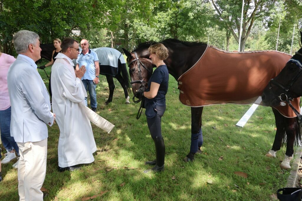 Ein herzliches Dankeschön an ALLE, die diesen Gottesdienst mitgestaltet haben. Auch ein Dank an alle Helfer:innen des Reitervereins, die die schöne Altarinsel mit dem herrlichen Blumenschmuck arrangiert haben. Mein Dank gilt auch Dekan Karl Jung und dem Reiterpräsident, Herrn Peter Hoffmann; ohne sie wäre solch ein Gottesdienst nicht möglich.