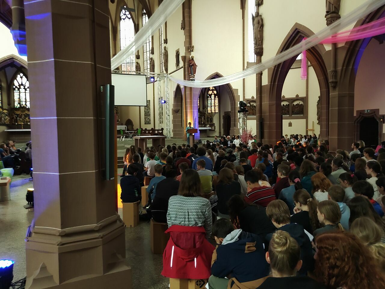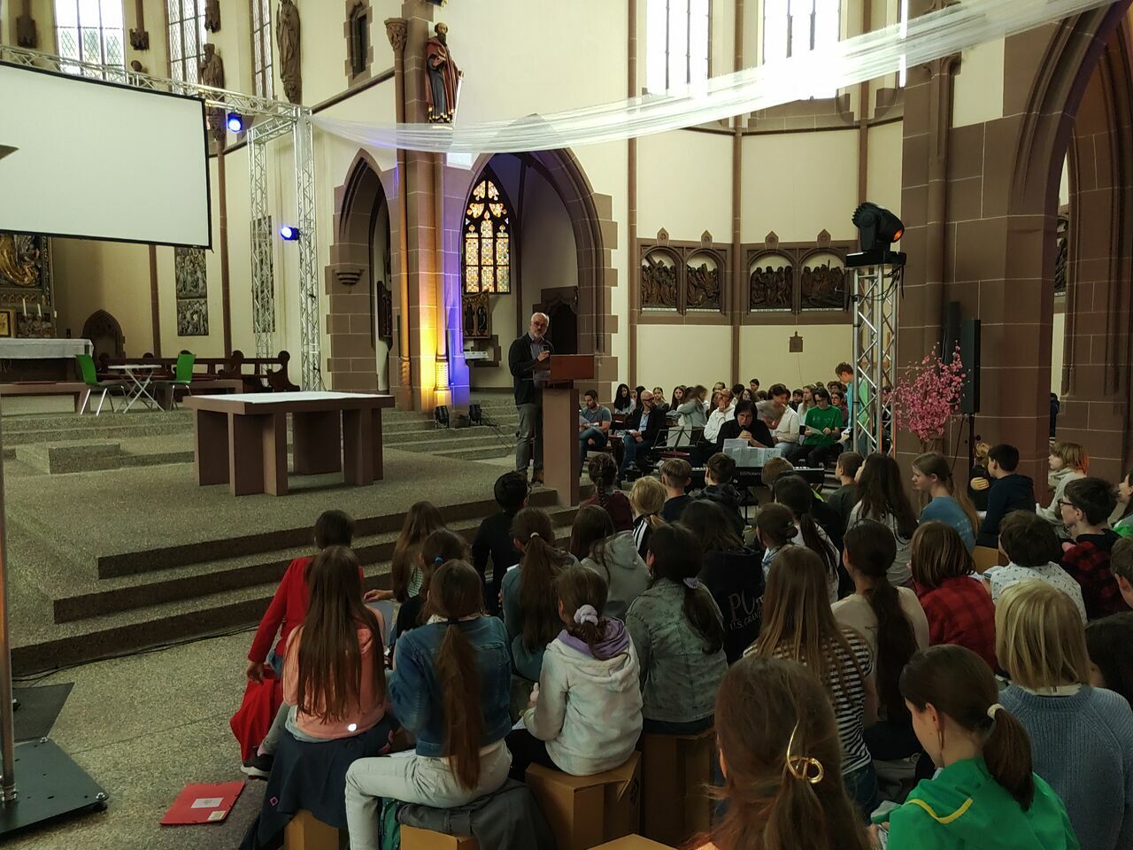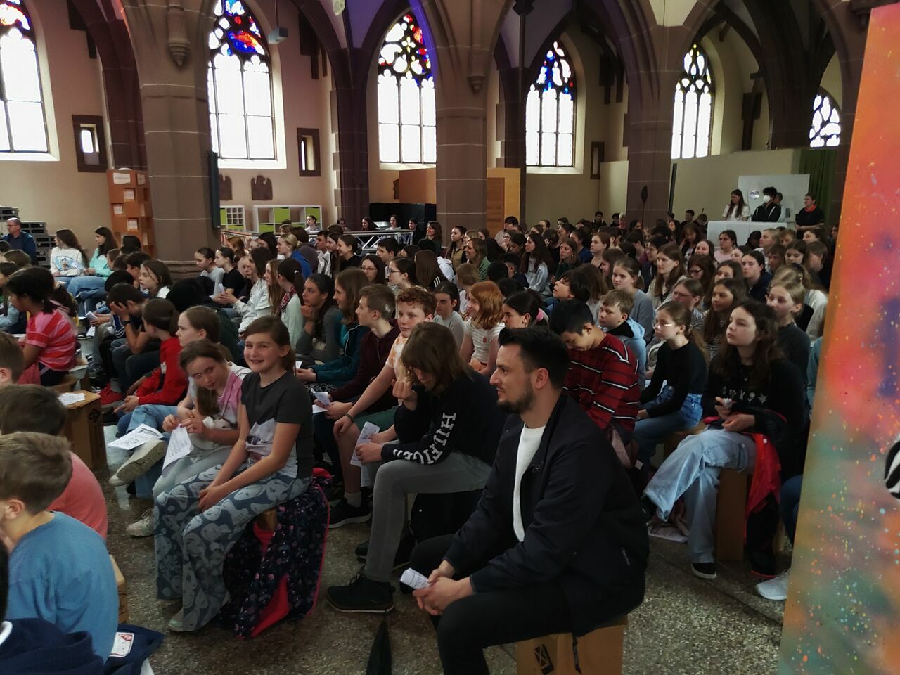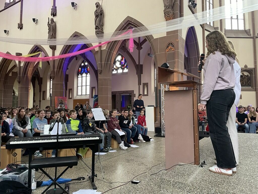 Ein herzliches Dankeschön geht an alle, die geholfen haben, diesen Gottesdienst umzusetzen. Der Gottesdienst wurde musikalisch von L. Hirsch auf dem Schlagzeug und Frau Dr. Oettinger am Klavier begleitet. Zudem zeigte Elissa Köppel (5a) ihr Können an der Geige. Schülerinnen und Schüler aus allen Stufen haben entweder beim Ab- oder Aufbau geholfen oder den Gottesdienst direkt mitgestaltet. So konnten alle miteinander füreinander einen großartigen letzten Schultag vor den Pfingstferien erleben.