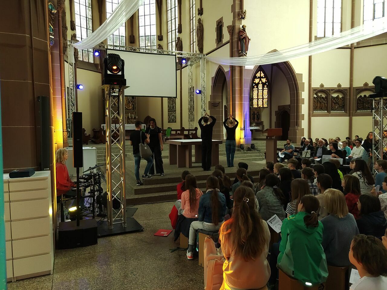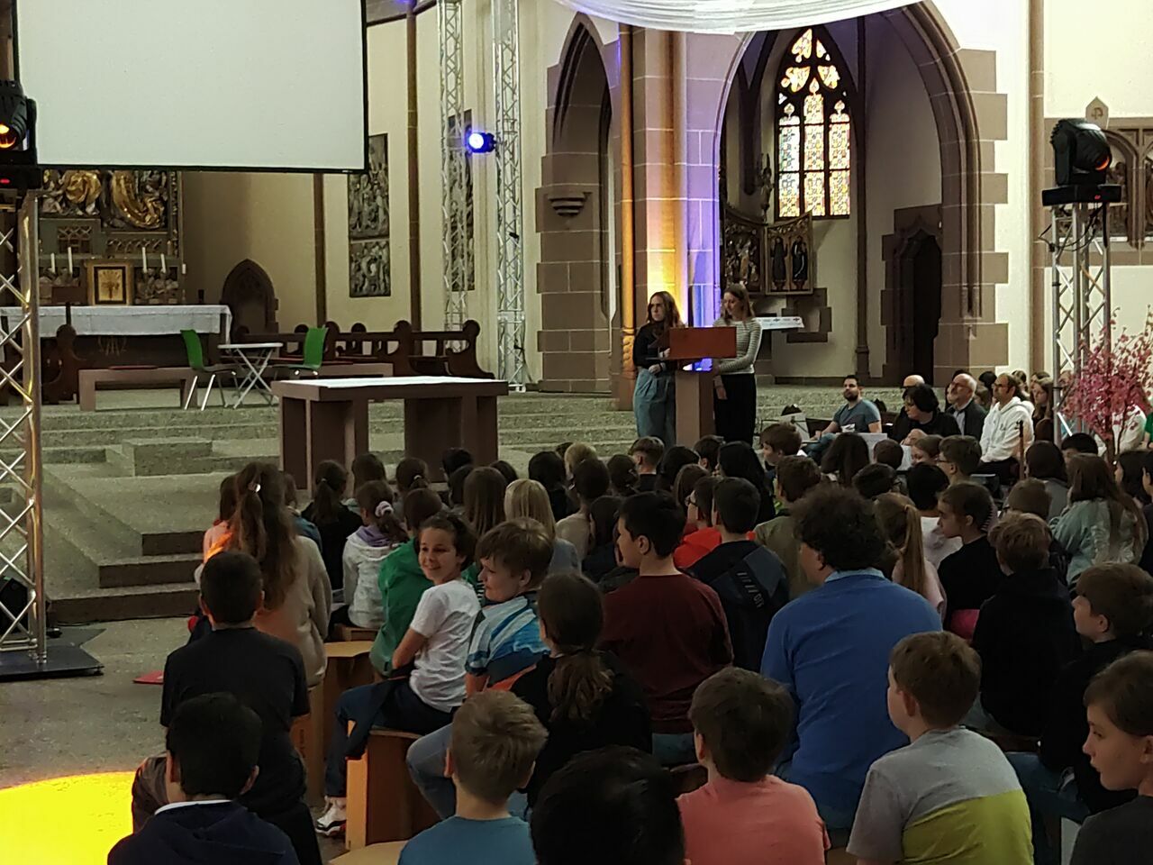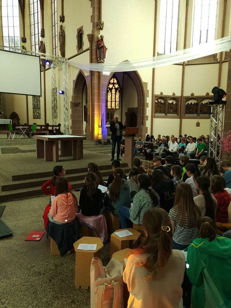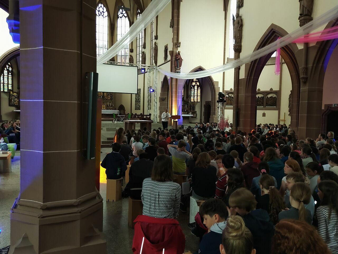 Ein herzliches Dankeschön geht an alle, die geholfen haben, diesen Gottesdienst umzusetzen. Der Gottesdienst wurde musikalisch von L. Hirsch auf dem Schlagzeug und Frau Dr. Oettinger am Klavier begleitet. Zudem zeigte Elissa Köppel (5a) ihr Können an der Geige. Schülerinnen und Schüler aus allen Stufen haben entweder beim Ab- oder Aufbau geholfen oder den Gottesdienst direkt mitgestaltet. So konnten alle miteinander füreinander einen großartigen letzten Schultag vor den Pfingstferien erleben.