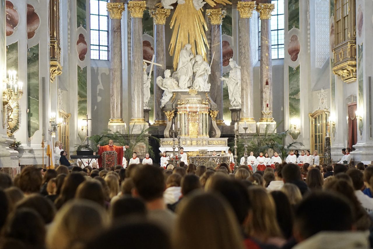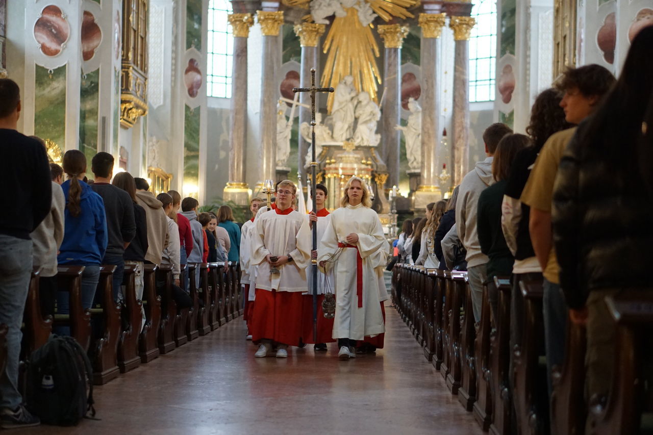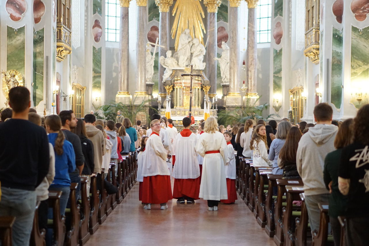 Wie jedes Jahr versammelte sich die Schulgemeinschaft zum Ursula-Gottesdienst in Form einer Eucharistiefeier in der Jesuitenkirche. Dieser wurde am 20.10.2023 von Dekan Karl Jung zelebriert, um der heiligen Ursula zu gedenken.