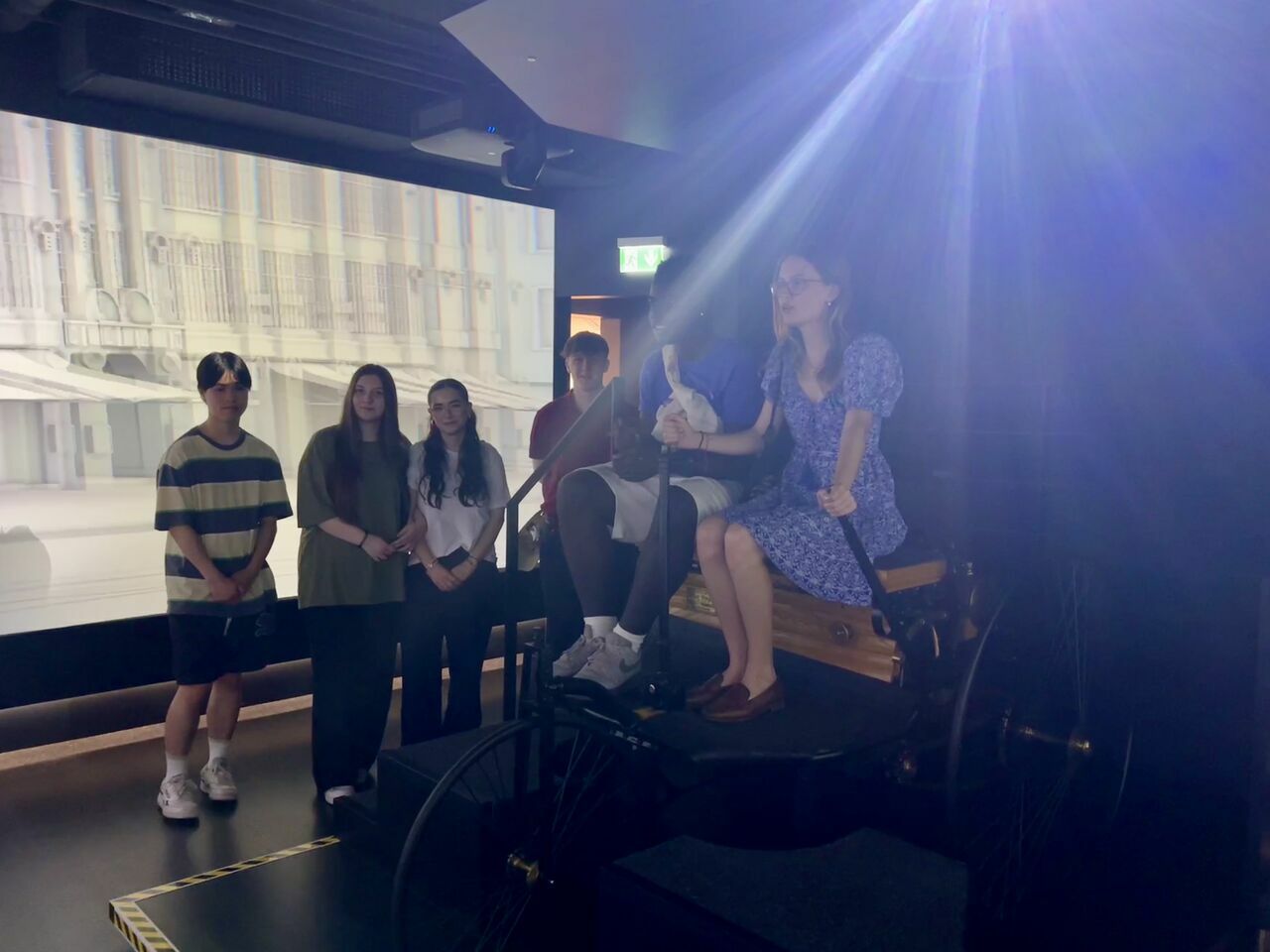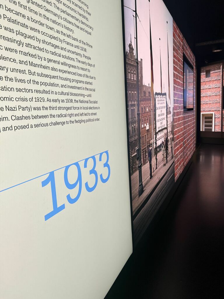 Durch eine moderne digitale Ausstellung konnten wir anhand einer „Zeitmaschine“ durch die Zeit reisen und von der Weimarer Republik bis zum Ende des Zweiten Weltkriegs historische Fotos, Filme und informierende Texte zu der Zeitspanne sehen. Somit bekamen wir erneut eine Erfrischung unseres Wissens über die Weimarer Republik, das Ende und die Folgen des Ersten Weltkrieges, die politische Lage, die darauf folgte sowie die Vorgeschichte und Entstehung der NS-Zeit. Wir schauten uns bspw. originale Schülerzeitungen aus dieser Zeit an, in denen sichtbar wurde, welche Ideologien die Jugend prägten und „formten“. Auch durften wir echte Aufnahmen Mannheims vor und nach den amerikanischen Angriffen sehen und können jetzt stolz behaupten, dass Mannheim eine wirklich schöne, von Altbau geprägte, Stadt war und an manchen Orten immer noch ist. Anhand weiterer solcher Darstellungen konnten wir voller Wissen und bildlicher Vorstellungen, das MARCHIVUM verlassen - nachdem wir zum Abschluss noch den Mannheimer Benz durch das virtuelle Mannheim fahren durften!
