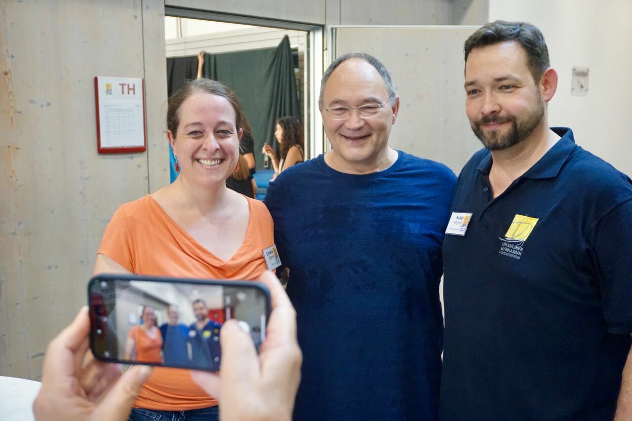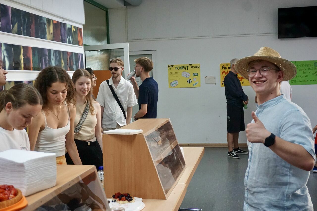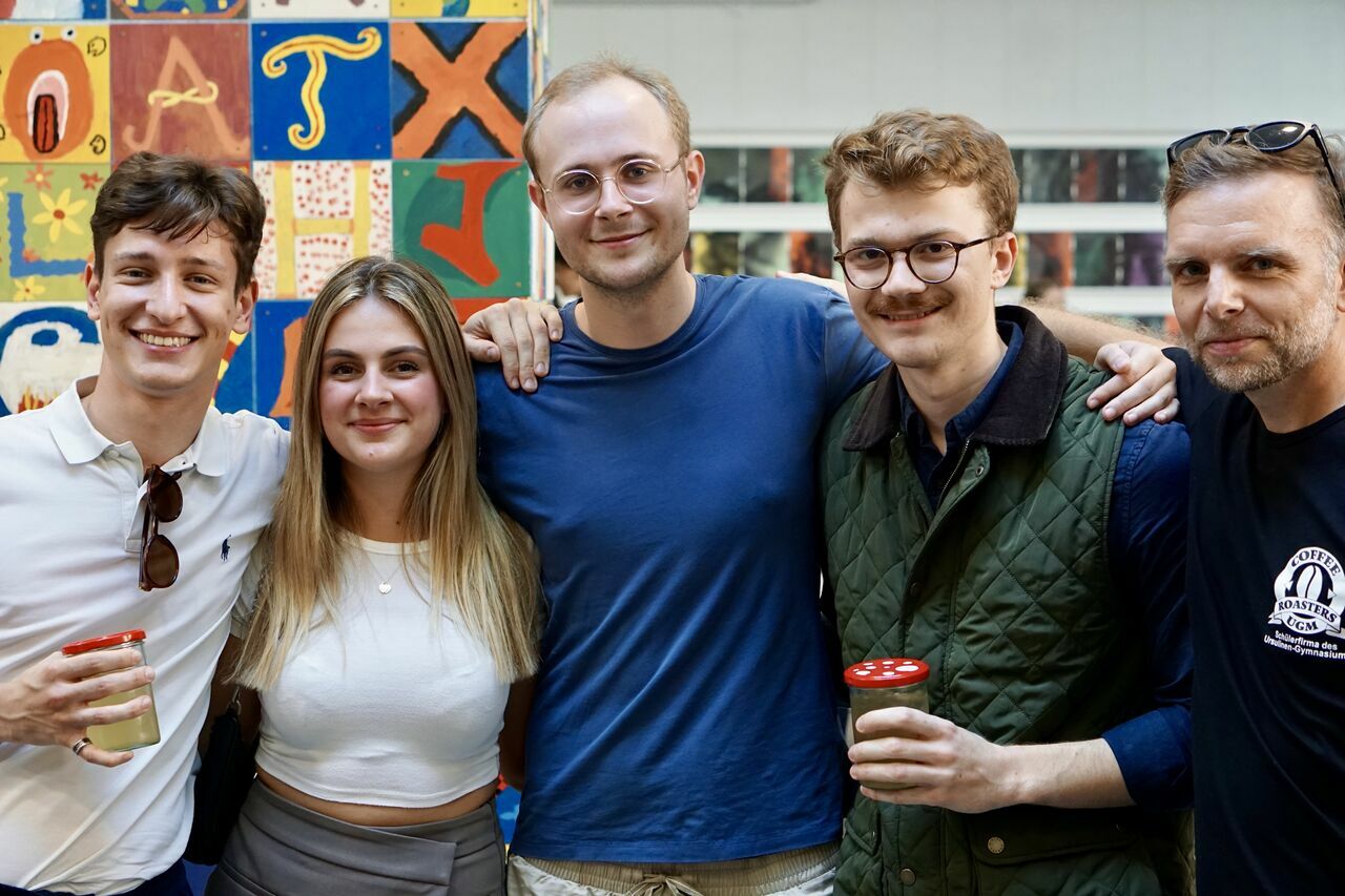 Am Freitag, dem 19. Juli, fand von 17 bis 21 Uhr das mit Spannung erwartete Sommerfest des UGM statt. Schon am Haupteingang begrüßten bunte Plakate die Gäste und informierten über die verschiedenen Attraktionen des Abends. Der große Hof war festlich mit Stehtischen und langen Esstischen ausgestattet, die Platz für alle Besucher boten. Die Schüler der 9. und 10. Klassen sorgten mit Hot Dogs, Cocktails und Salaten für eine ausgezeichnete Verpflegung. Zusätzlich gab es einen Imkerstand und einen Grill, an dem Eltern die Gäste kulinarisch verwöhnten. Im Foyer bot die KS1 köstliche Kuchen an, während die Coffee Roasters Kaffee aus eigener Produktion servierten.