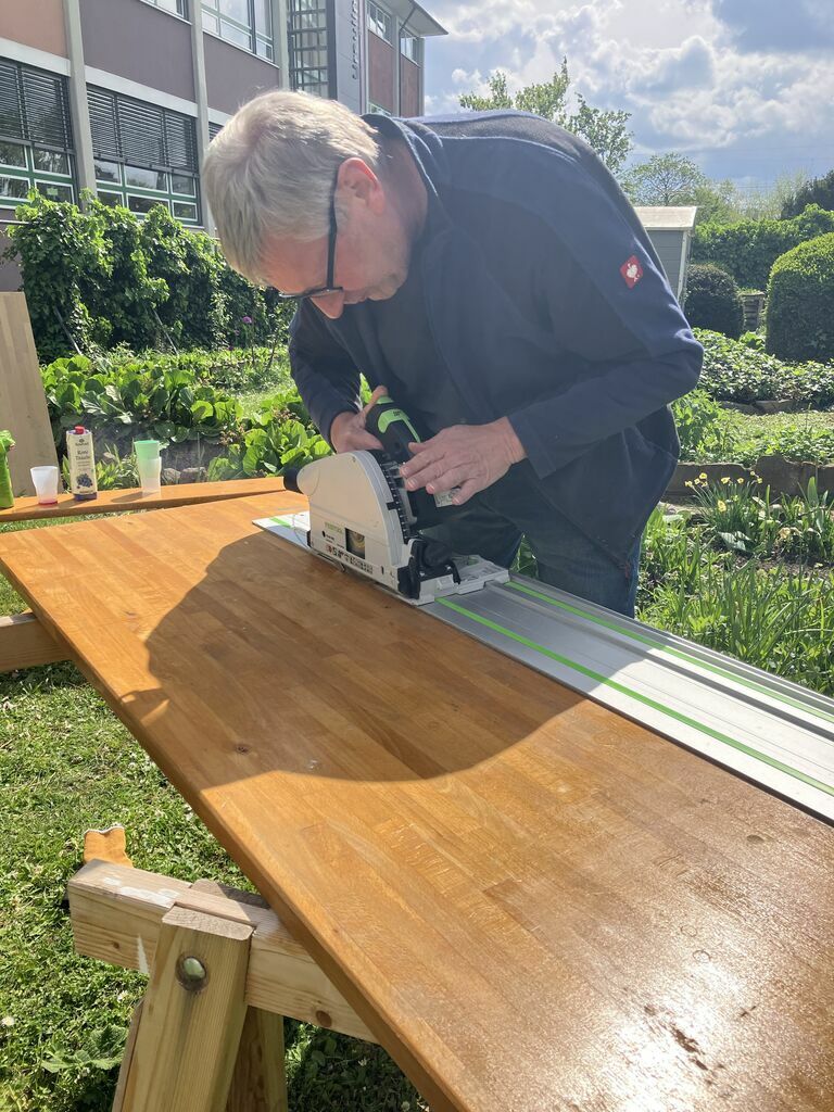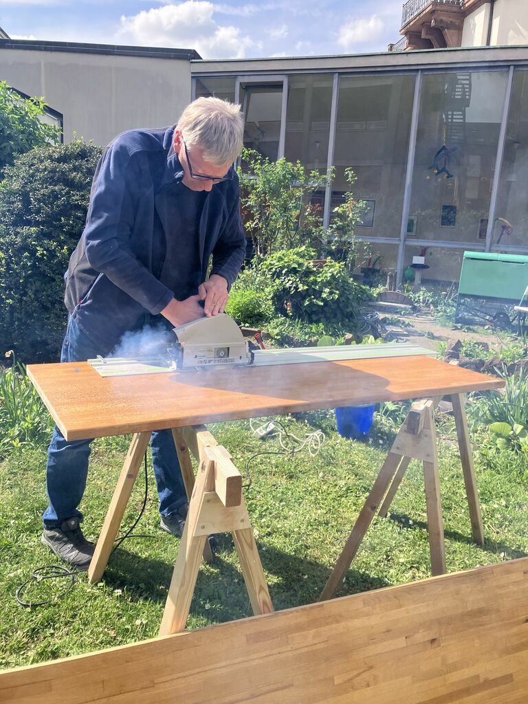 Zusammen mit der Hilfe von Herrn Helfmann und seiner Kreissäge sind wir schnell vorangekommen! Vielen Herzlichen Dank!