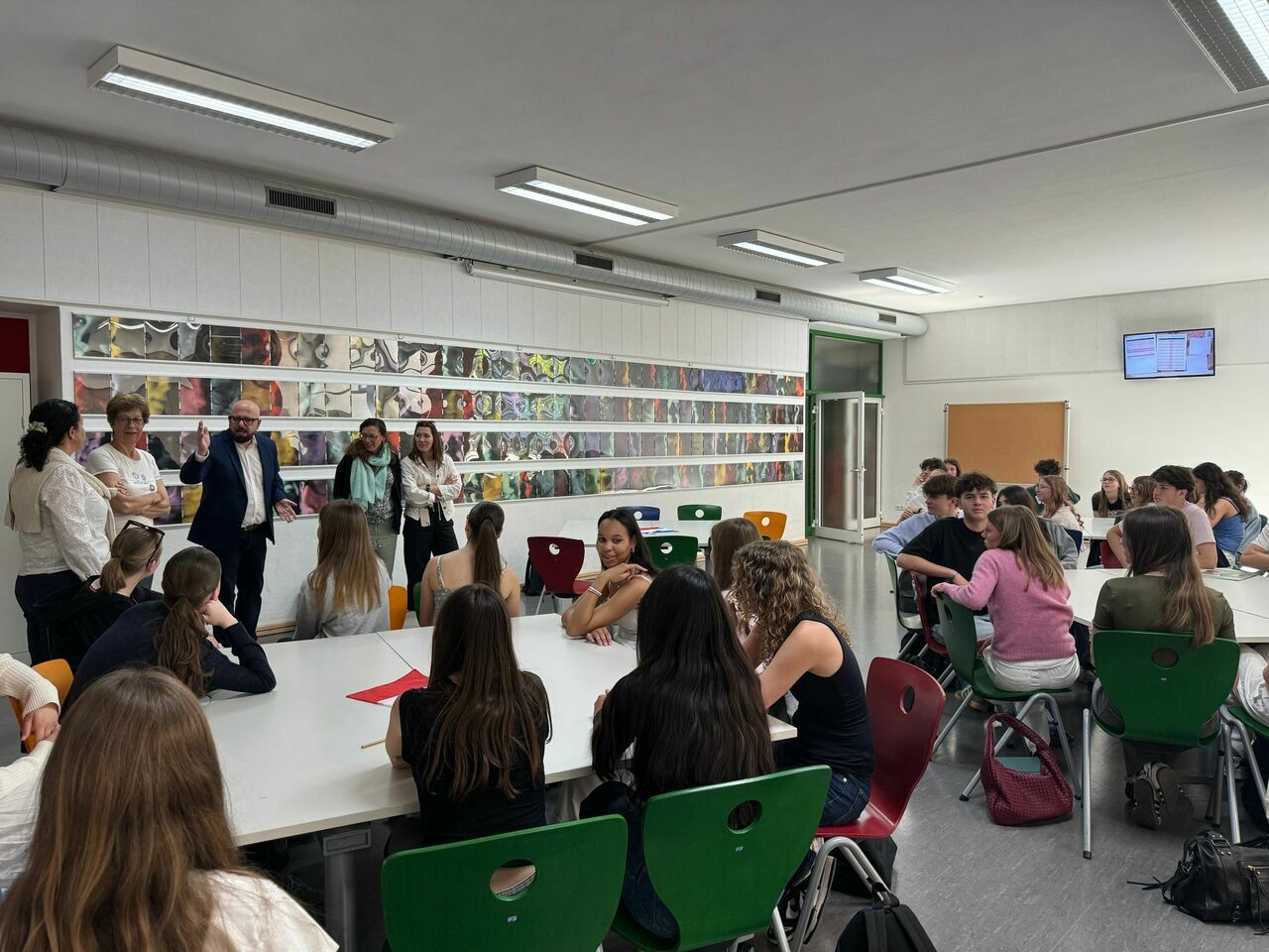 Am darauffolgenden Tag besuchten die französischen Austauschschüler das erste Mal eine deutsche Schule. Nach einem kleinen Empfang und einer Begrüßung durch unseren Schulleiter, Herrn Stöckl, machten wir uns auf den Weg zum Technoseum, wo wir durch einen spannenden Workshop geleitet wurden. Anschließend machten wir eine Stadtrallye, um Mannheim kennenzulernen. Diese ermöglichte nicht nur den Franzosen, sondern auch den Deutschen, ihre Heimatstadt richtig kennenzulernen und mal genauer hinzuschauen.