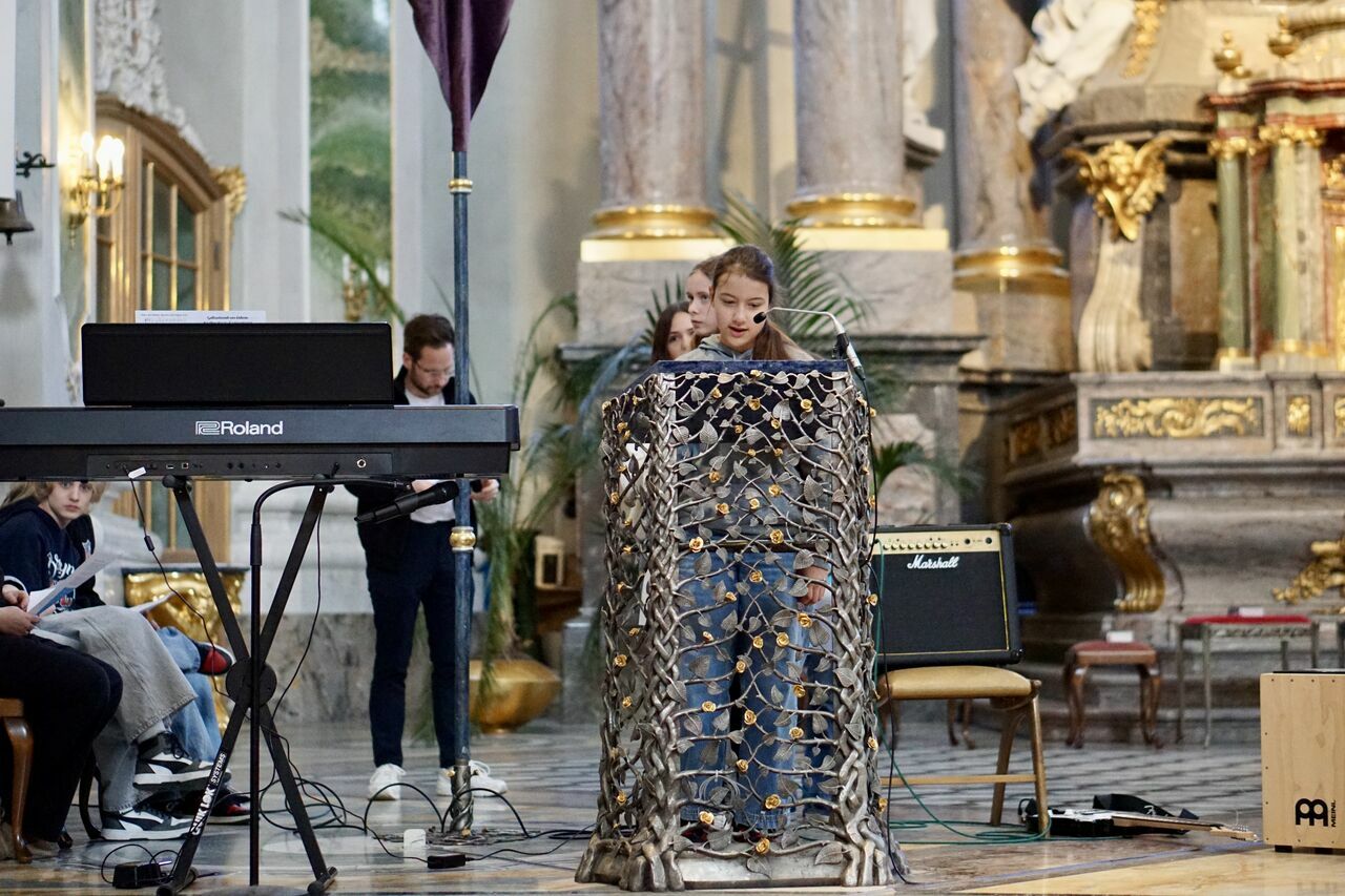 Entsprechend sprachen die Mitwirkenden des Gottesdienstes – neben Herrn Timpe und Frau Weber weitere Kolleg*innen sowie Schüler*innen aus Klasse 6 und 9 – über die Bedrohung unserer Erde durch Umweltverschmutzung und den Klimawandel und welche Bedeutung uns Menschen dabei zukommt, aber auch davon, wie wir als Gemeinschaft diesem Problem begegnen können.