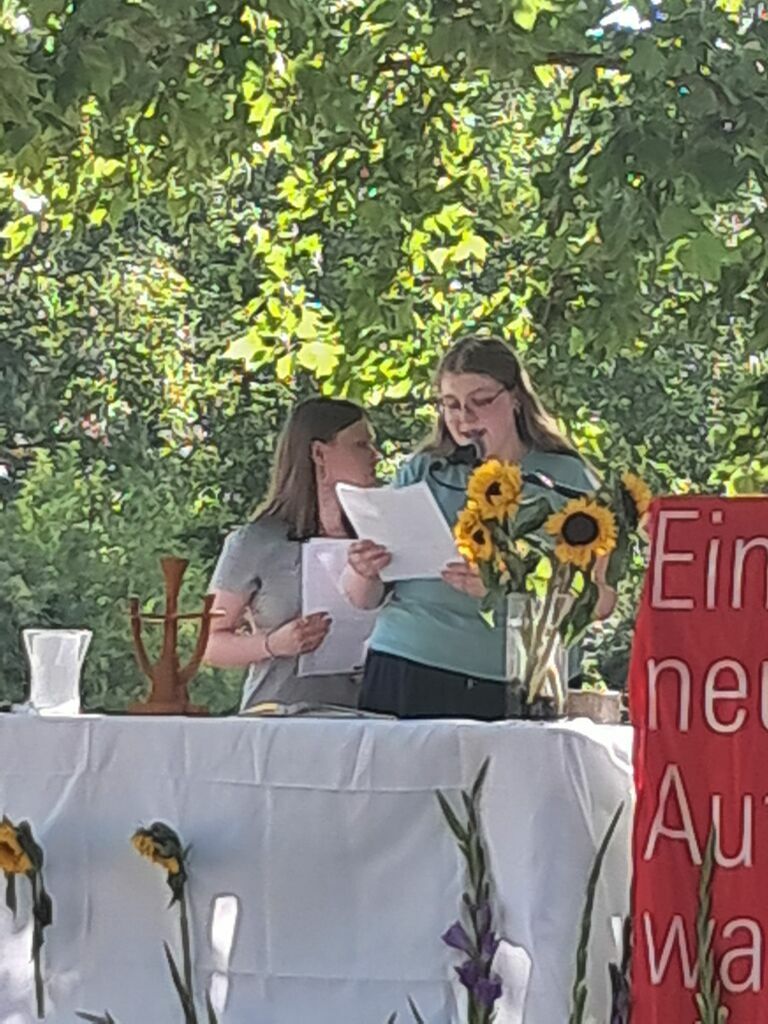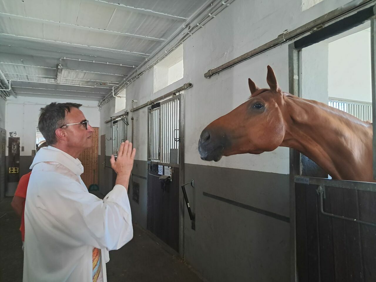 Religions AG). Der Abschluss dieses Projekts ist der Pferdesegnungsgottesdienst mit Dekan Karl Jung, der dieses Jahr am 28. Juni im Reiterverein unter freiem Himmel stattfand. Die teilnehmenden Schülerinnen und Schüler des Projektes gestalteten den Gottesdienst, der den achtsamen Umgang des Menschen mit den Tieren thematisierte, anhand von Texten über ihre Erfahrungen mit den Pferden und von Fürbitten für die Schöpfung mit. Auch Herr Stöckl besuchte den Gottesdienst und dankte dem Präsidenten des Reitervereins, Herrn Peter Hofmann, für die bestehende Kooperation. Nach Ende des Gottesdienstes segnete der Dekan jedes einzelne Pferd auf dem Gelände. Anschließend gab es ein gemeinsames Abendessen im Vereinsrestaurant.