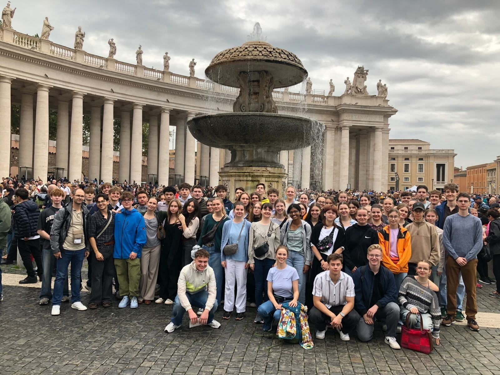 Nach der Audienz hatten wir die Möglichkeit uns zur Besichtigung zwischen den vatikanischen Museen oder dem Petersdom mit der Kuppel zu entscheiden. In den vatikanischen Museen konnten wir die prunkvollen Ausstellungen bewundern und durch die historischen Gänge schlendern, in denen sich Schätze aus verschiedenen Jahrhunderten aneinanderreihen. Besonders die Sixtinische Kapelle beeindruckte die meisten von uns. Michelangelos Deckenfoto live zu sehen ist schließlich eine einmalige Erfahrung. Auch der Besuch in das eindrucksvolle, prunkvolle Bauwerk, den Petersdom, war ein unvergessliches Erlebnis. Der majestätische Innenraum und die unzähligen Details, die den Dom schmücken, ließ uns innehalten. Der Petersdom steht über dem Grab des Apostels Petrus, des ersten Bischofs von Rom und des ersten Papstes. Es wird angenommen, dass Petrus auf dem vatikanischen Hügel gekreuzigt und begraben wurde, was diesen Ort besonders heilig macht.