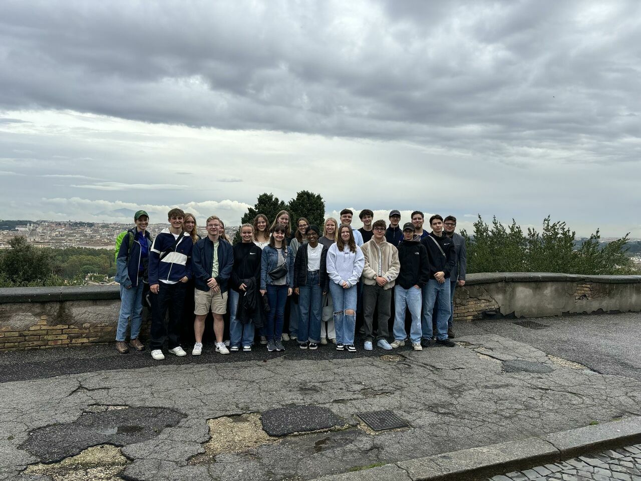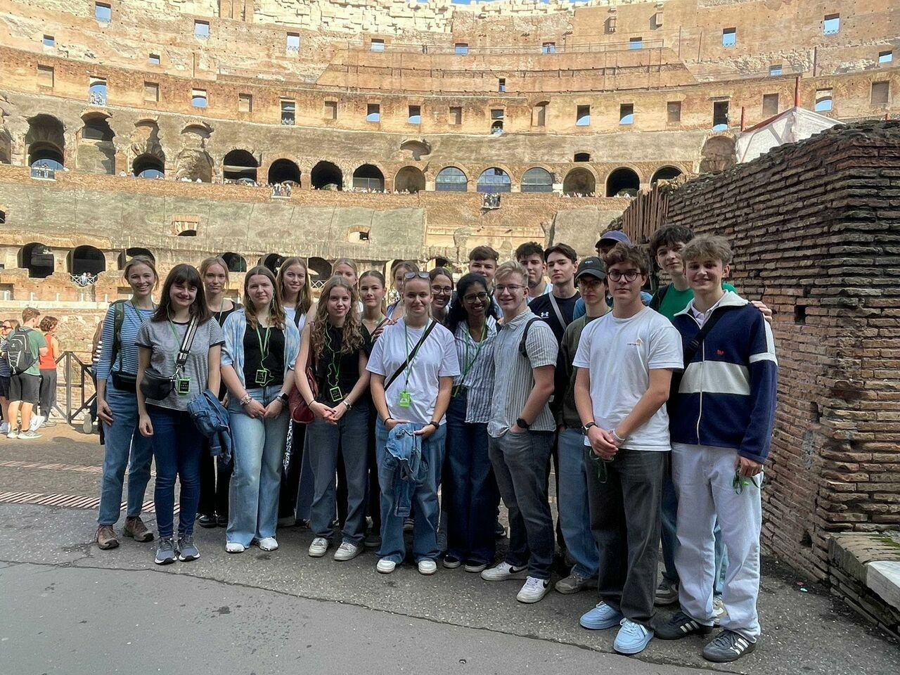 “Sei gegrüßt ewige Stadt!”, hieß es in der Woche vom 20.10.2024 bis zum 26.10.2024, in der wir, die Kursstufe 2, die Hauptstadt Italiens erkundeten und das südländische Flair genossen. Trotz einer langen Fahrt wurden wir alle mit guter Laune in Rom abgesetzt. Überrascht von dem guten Wetter haben wir uns direkt auf den Weg zum Strand in Ostia gemacht. Dort konnten wir Muscheln sammeln, die Aussicht genießen und kleine Strandspaziergänge machen. Doch viel Zeit hatten wir nicht und brachen daher schon bald wieder auf, um in unser Hotel zu kommen.Angekommen im „Schepper`s", waren wir unglaublich erleichtert, dass wir problemlos einchecken konnten. Getrieben vom Hunger erkundeten die Meisten daraufhin die Umgebung auf der Suche nach Essen, während Manche sich direkt schlafen legten.