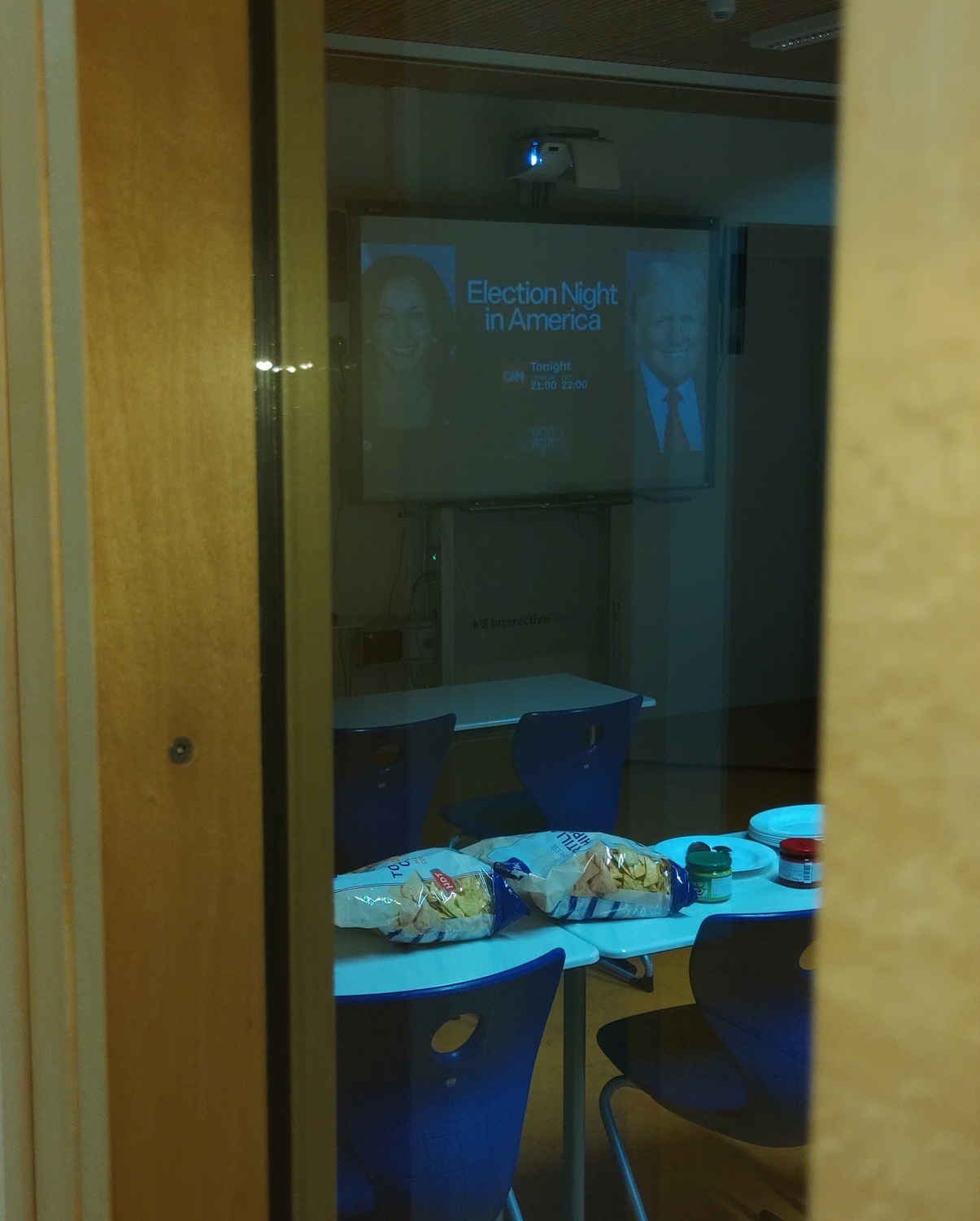Leider konnte um Mitternacht noch keine eindeutige Wahlprognose abgegeben werden und so mussten wir ohne eine zufriedenstellende Vorhersage den nach Hause Weg antreten. Auch wenn uns allen am kommenden Tage die Müdigkeit und das Entsetzen über die Wahlergebnisse im Gesicht geschrieben stand, war der vorherige Abend trotzdem ein voller Erfolg im Sinne des Austauschs unter USA-begeisterten Schülerinnen und Schülern.