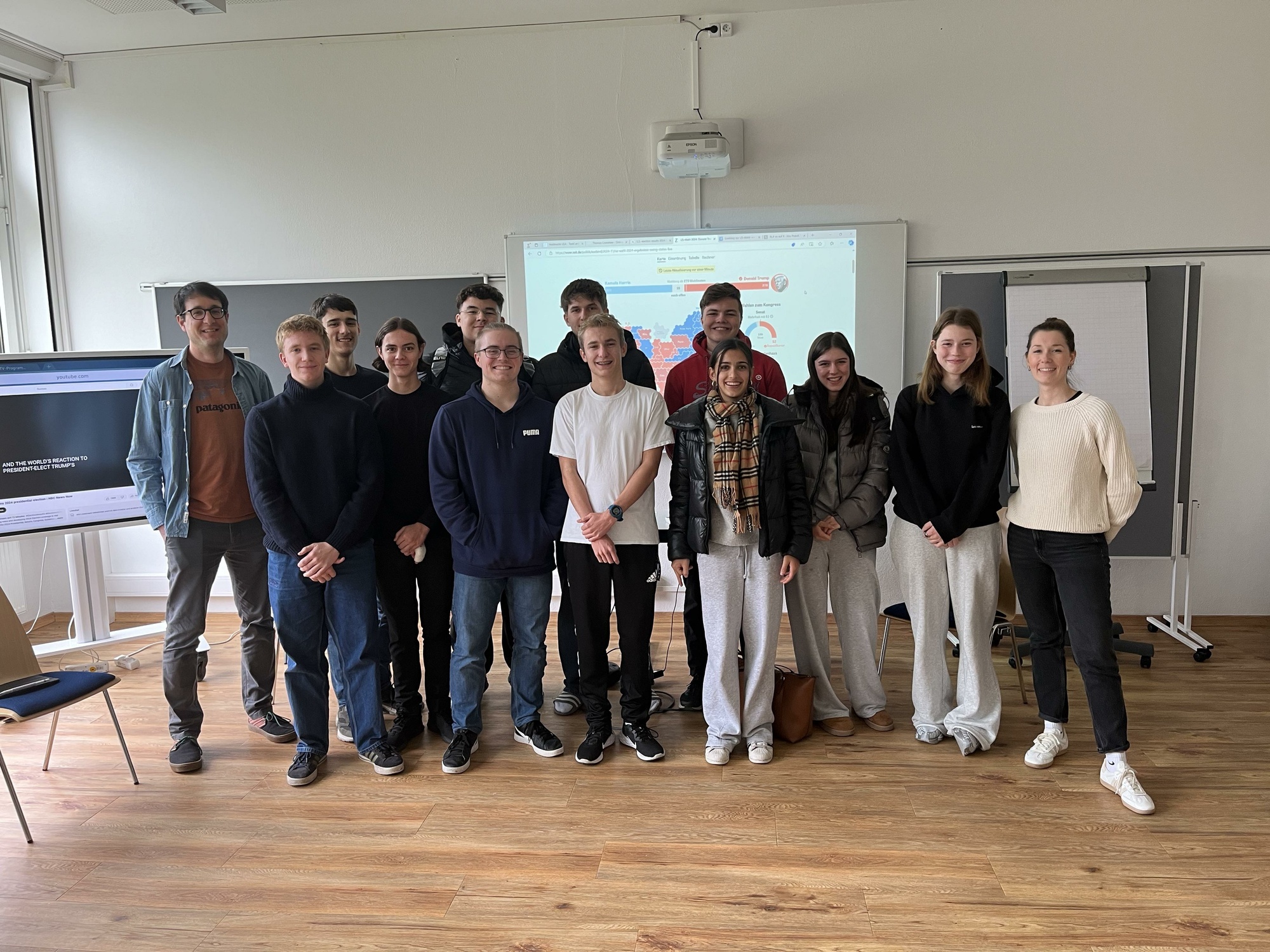 Am Morgen des 6. November zeigte sich, dass Trump zunehmend Chancen auf den Wahlsieg hatte. Nach dem gemeinsamen Frühstück analysierten wir die Ereignisse der Wahlnacht, wobei die Reaktionen unterschiedlicher Akteure im Mittelpunkt standen. Dazu teilten wir uns in vier Gruppen auf, um die Perspektiven der internationalen Politik, der sozialen Medien, der deutschen und der amerikanischen Berichterstattung zu untersuchen. Die Ergebnisse präsentierten wir uns gegenseitig, was uns ein Bild darüber ergab, wie unterschiedlich das Wahlergebnis von verschiedenen Personen oder Institutionen aufgenommen wurde.