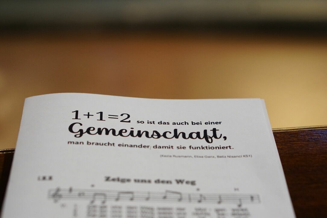 Musikalisch begleitete Dr. Frau Oettinger auf dem Klavier den Gottesdienst. Jeder große und kleine Beitrag von Schülern und Lehrern ließ an dem Morgen spüren: "1+1=2 so ist das auch bei einer Gemeinschaft, man braucht einander, damit sie funktioniert."