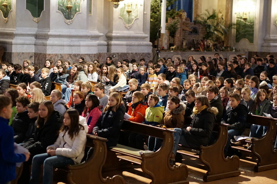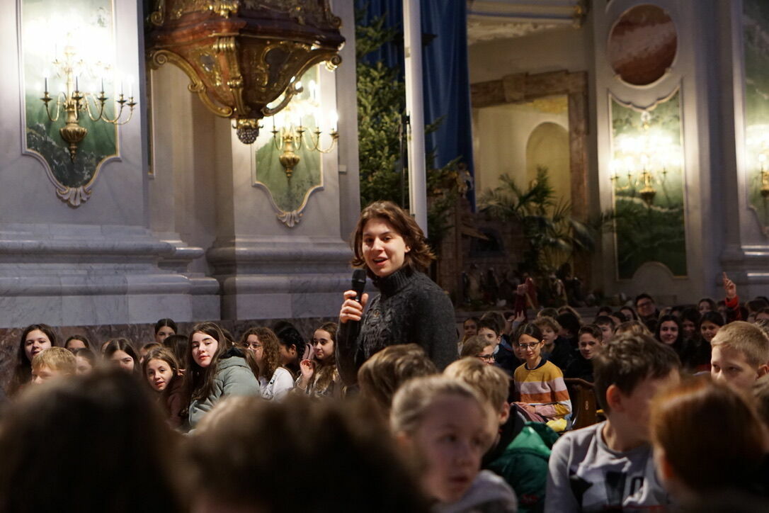 Dieser Aspekt spiegelt sich auch gleich zu Beginn des diesjährigen Angela-Gottesdienstes, zu welchem sich die Schulgemeinschaft am 29. Januar 2025 in der Jesuitenkirche versammelt hatte. Auf kreativer Art und Weise präsentierten Schüler aus den unterschiedlichsten Jahrgangsstufen ihre Gedanken zur Gemeinschaft: jedes Mitglied ist wichtig für die Gemeinschaft und man muss diese mit Liebe und Respekt pflegen und hegen.