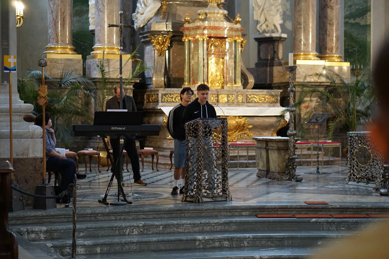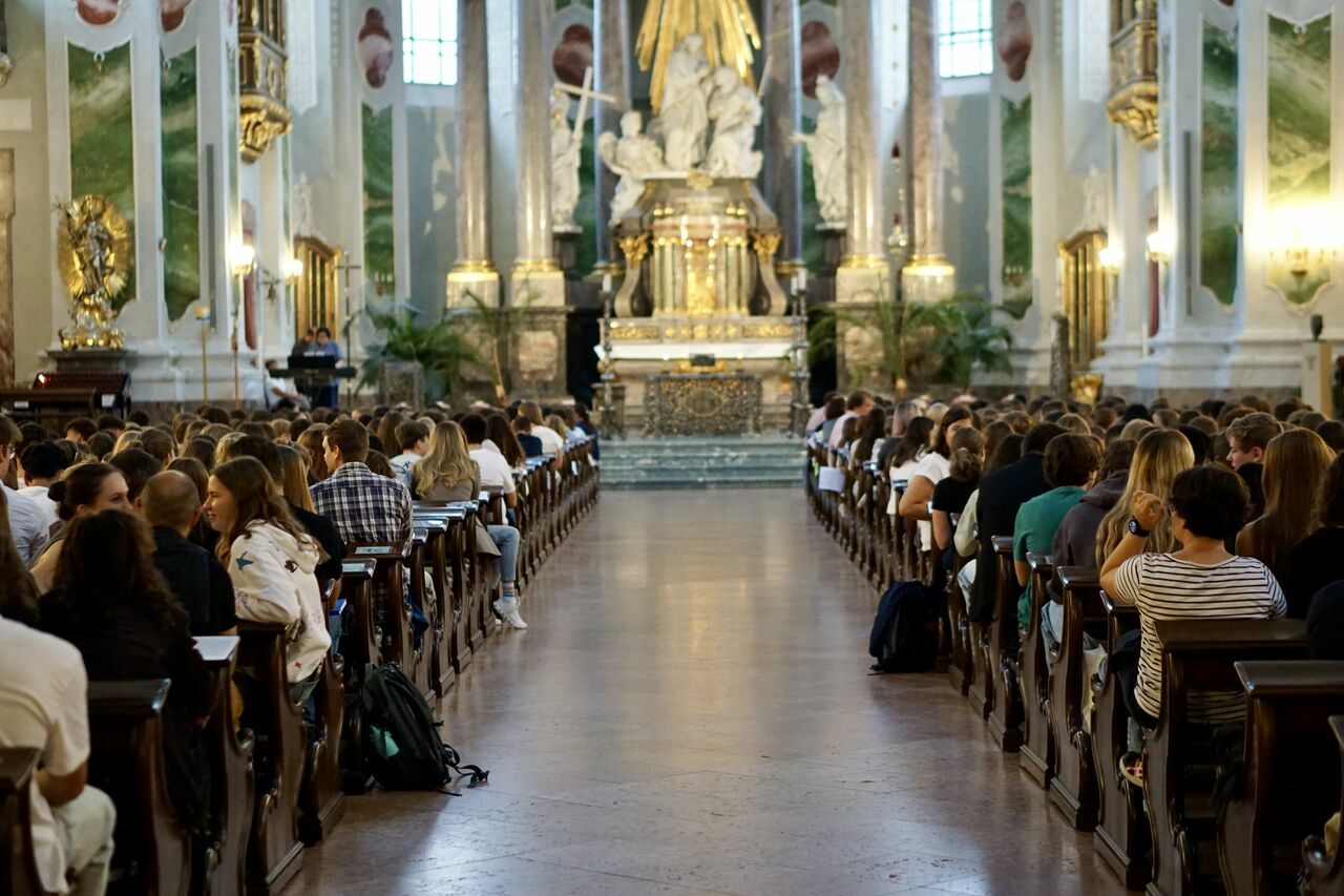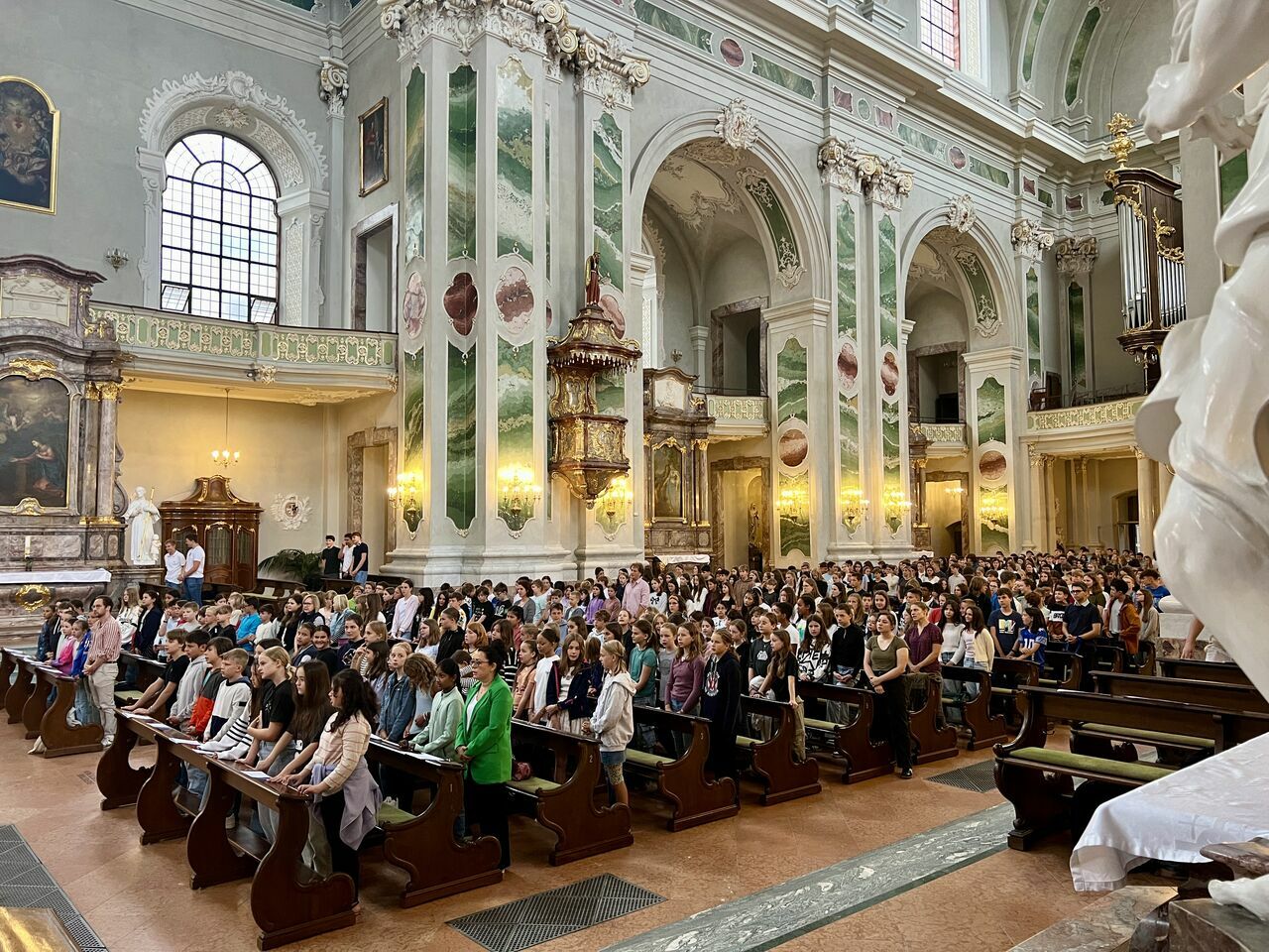Dem Sturm mit Vertrauen in die Gemeinschaft begegnen: „Mit Jesus im Boot,“ so das Leitmotiv des diesjährigen Eröffnungsgottesdiensts am UGM. Nach den Sommerferien trat die Schulgemeinschaft des UGM in der Jesuitenkirche zusammen, um sich mit dem von Herrn Botsch organisierten Gottesdienst auf die Herausforderungen und die zu erwartenden Stürme des neuen Schuljahres vorzubereiten. Wie Herr Botsch betonte könne man, auch wenn die eine oder andere Aufgabe im Laufe des Schuljahres zu groß erscheine, der Angst des Scheiterns durch den Glauben und das Vertrauen in die Schulgemeinschaft begegnen. Wie Jesus im Markus-Evangelium dem Sturm mit seiner inneren Ruhe begegne, die in einem Urvertrauen auf Gott gründet, könne man sich auch im Alltag sicher sein, dass man nie alleine sei mit den Problemen des Alltags.