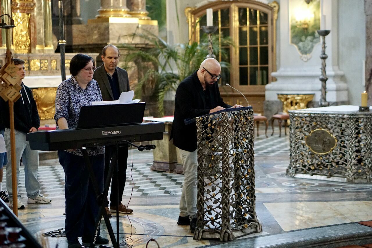 Für die musikalische Untermalung des Gottesdienstes sorgten Frau Dr. Oettinger (Keyboard) und Frau Bartaune (Gesang). Die Lieder reichten hierbei vom nachdenklichen „Ich lobe meinen Gott, der aus der Tiefe mich holt“ bis zum zukunftsbejahenden „Geh unter der Gnade“. Ebenso zuversichtlich klang der von Julian Sommer vorgetragene irische Segenswunsch. Die von den Schülerinnen und Schülern der Oberstufe sowie von Schulleiter Alexander Stöckl vorgetragenen Fürbitten betonten wiederum, dass eine Gemeinschaft nicht ohne Hilfsbereitschaft und gegenseitige Unterstützung funktionieren kann.