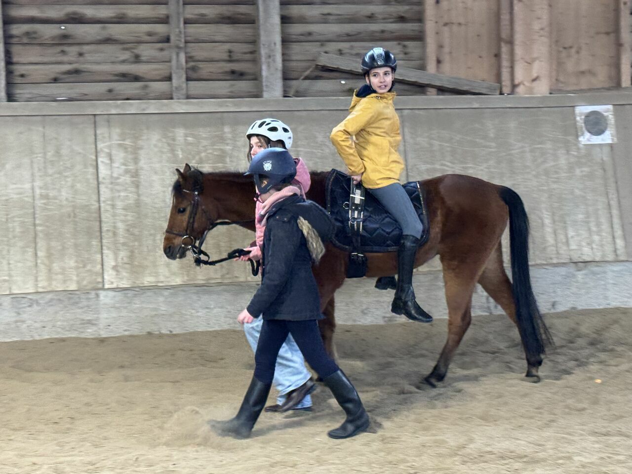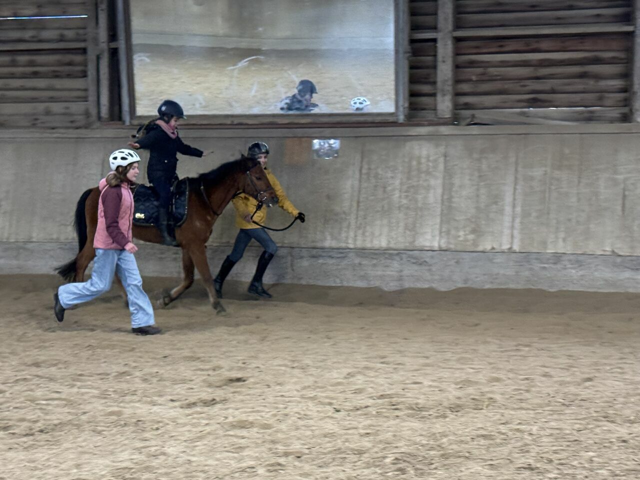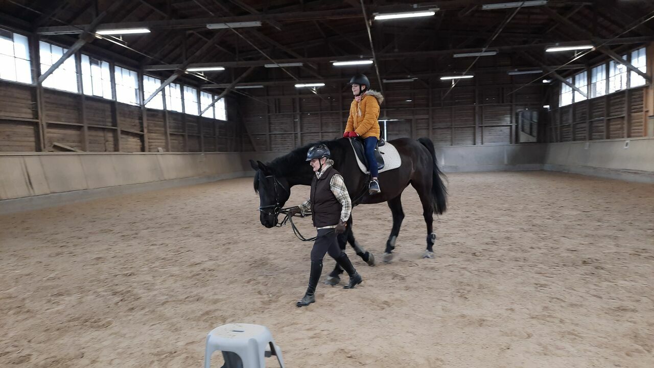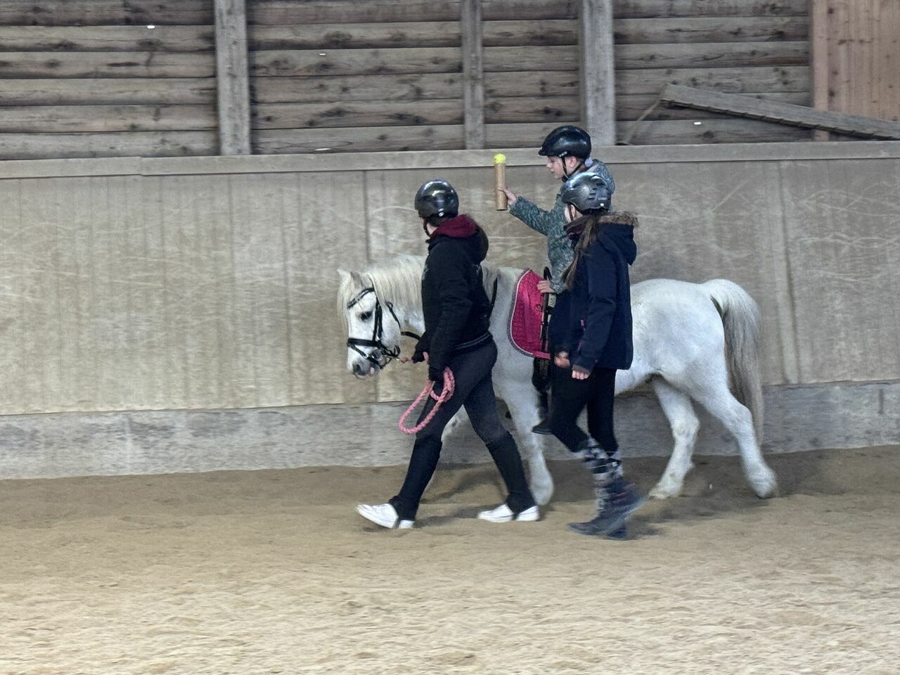 Fünf Schülerinnen haben sich aus dieser Gruppe für den Fortführungskurs angemeldet und durften in den Genuss kommen, von Sr. Regina geführt, eine Runde auf dem Großpferd Franz zu machen. Da konnte man dann strahlende Kindergesichter sehen- so hoch zu Ross, das war doch ein Highlight.