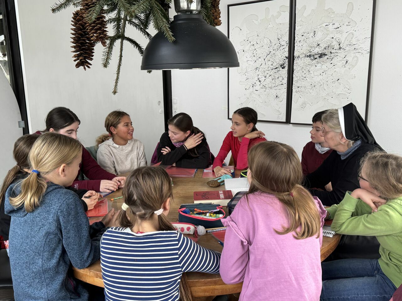 Am Samstag, den 11.02.2023 haben 11 Schülerinnen aus drei 6. Klassen den Grundkurs Religionsunterricht im Pferdestall mit einer Präsentation vor ca. 30 Personen beendet.Eltern, Geschwisterkinder und Großeltern haben sich die Zeit genommen, um sich diese Präsentation anzuschauen. Diese hat den Zuschauenden einen Überblick über die einzelnen Kurseinheiten gegeben. Anhand der unterschiedlichen Themen konnten die Zuschauenden einen Eindruck von dem gewinnen, was wir in diesem 1. Halbjahr erarbeitet haben. Die Themen behandeln Aspekte, die das Leben betreffen: