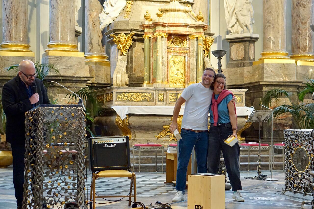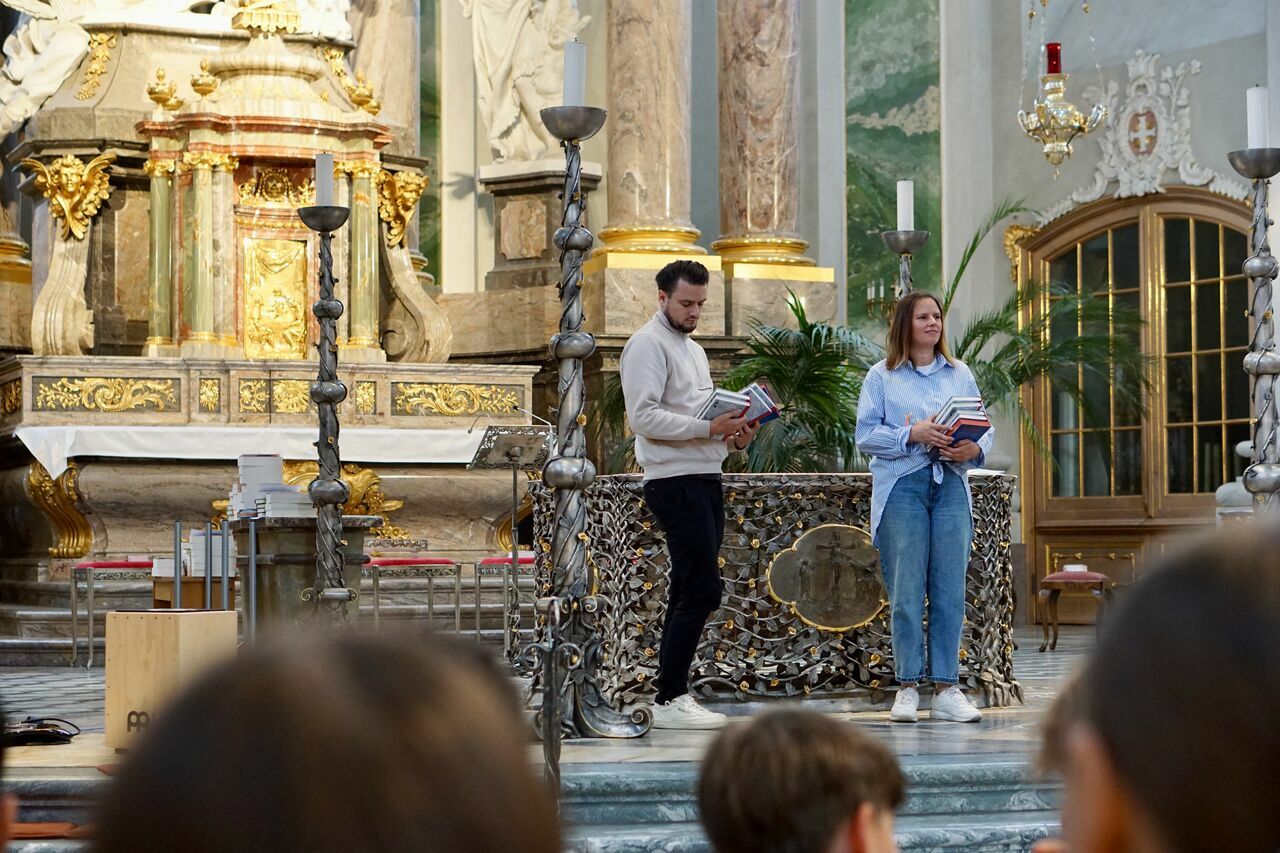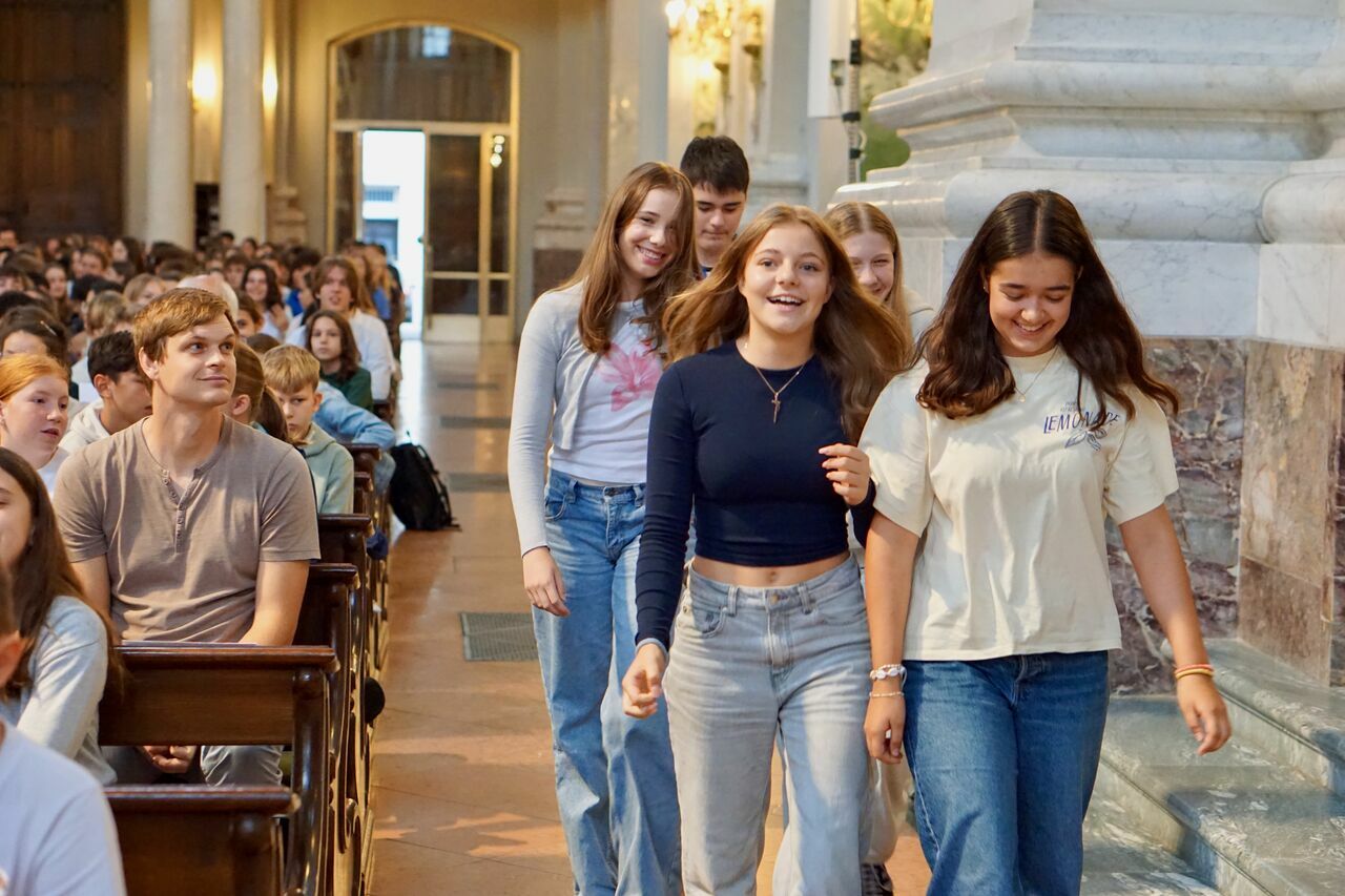 Ein besonderer Höhepunkt war der Abschlussgottesdienst in der Jesuitenkirche, der in diesem Jahr unter dem Motto „Aus vielen Teilen wird Gemeinschaft“ stand. In einem feierlichen Rahmen verabschiedete sich die Schulgemeinschaft von den langjährigen Kollegen Marcus Ohl und Alexander Putzier, die sich auf eigenen Wunsch neuen Herausforderungen stellen werden. Mit stehenden Ovationen würdigten Schülerinnen und Schüler, Kolleginnen und Kollegen sowie Eltern ihr großes Engagement, ihre Tatkraft und ihre Menschlichkeit. Beide haben unsere Schule in besonderer Weise geprägt und hinterlassen Spuren, die bleiben.