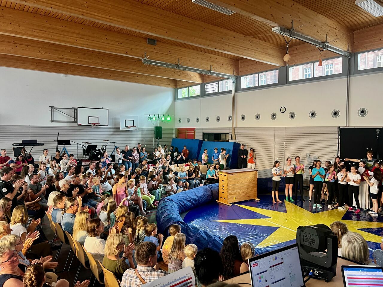 Auf der Bühne sorgten die Schulband und die Zirkus-AG für beste Unterhaltung: Musik, Artistik und Kreativität machten den Nachmittag zu einem besonderen Erlebnis für Groß und Klein.