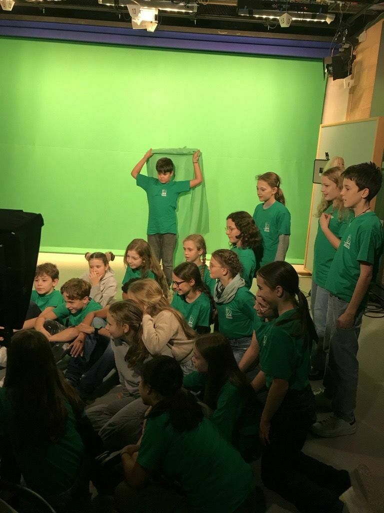 Von einem Mitarbeiter der Produktion wurden wir herzlich empfangen und zu allererst unseren Gegnern, den Tigerenten, vorgestellt. Dann erklärte man uns den geplanten Tagesablauf. Zu Beginn hat unsere Klasse eine Folge „krass nass“ angeschaut, die auch vom SWR produziert wird und anschließend gab es eine Studioführung! Wir haben uns die Requisitenhalle angeschaut und uns wurde erklärt, dass sehr viel am Set gar nicht echt ist. Zum Beispiel gibt es Äpfel, die nur aus Schaumstoff geformt und dann angemalt werden. Vor der Sendung wird den Darstellern genau gesagt, welchen Apfel sie essen dürfen und welchen nicht. Im Greenscreen Raum konnten wir selbst sehen, wie einfach Hintergründe in Szenen gelegt werden können.