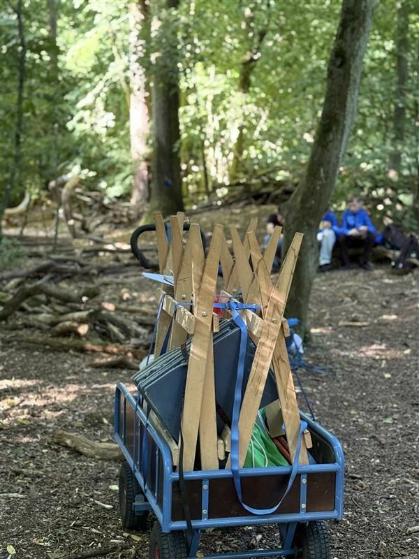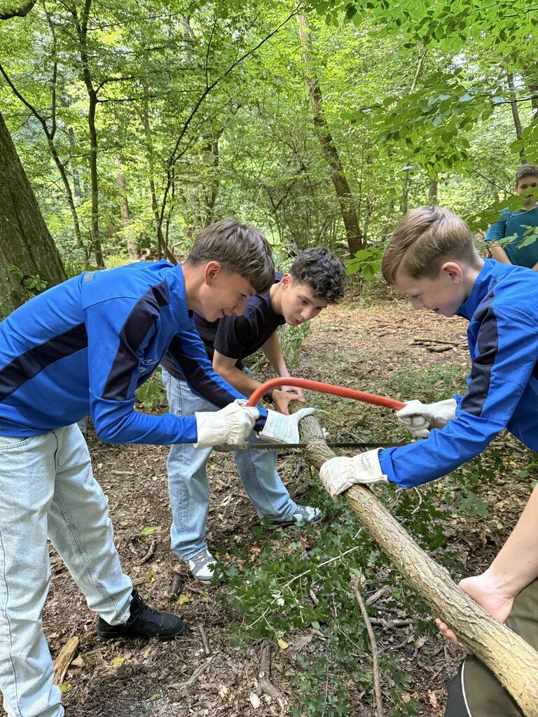 Zum Abschluss durften wir im Wald mit einer Säge eine kleine Holzscheibe von einem 25 Jahre alten Baum absägen. Diese konnten wir später als Untersetzer verwenden. Obwohl das nicht einfach war, hatten wir viel Spaß dabei – es war eine schöne Erinnerung an unseren Ausflug.