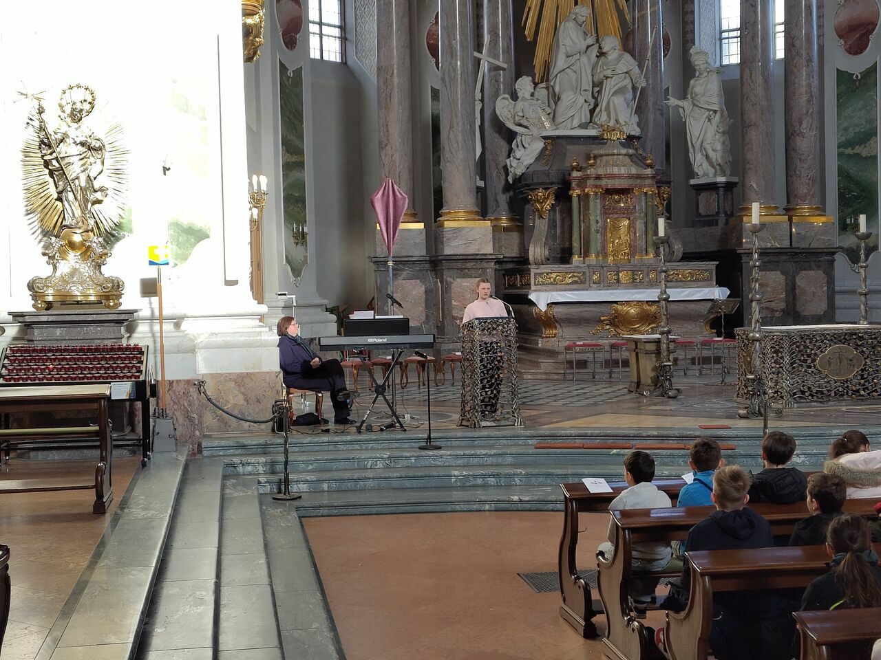 Auch in diesem Jahr wurde ein gemeinsamer Ostergottesdienst gefeiert am UGM, der unter der Leitung von Frau Nunn und Herrn Timpe von der Kursstufe gestaltet wurde. Im Zentrum stand das Thema „Im Verschwinden finden“, das sich wie ein roter Faden durch die verschiedenen Beiträge zog.Ein szenisches Anspiel zum Gleichnis vom verlorenen Schaf eröffnete den Gottesdienst und verdeutlichte die zentrale Botschaft: Jeder Einzelne zählt und geht nicht verloren. In den anschließenden Lesungen und Auslegungen, insbesondere zur Emmausgeschichte, wurde aufgegriffen, dass Menschen gerade in Zeiten der Unsicherheit und des Umbruchs Orientierung suchen und oft erst im Rückblick erkennen, was sie trägt.