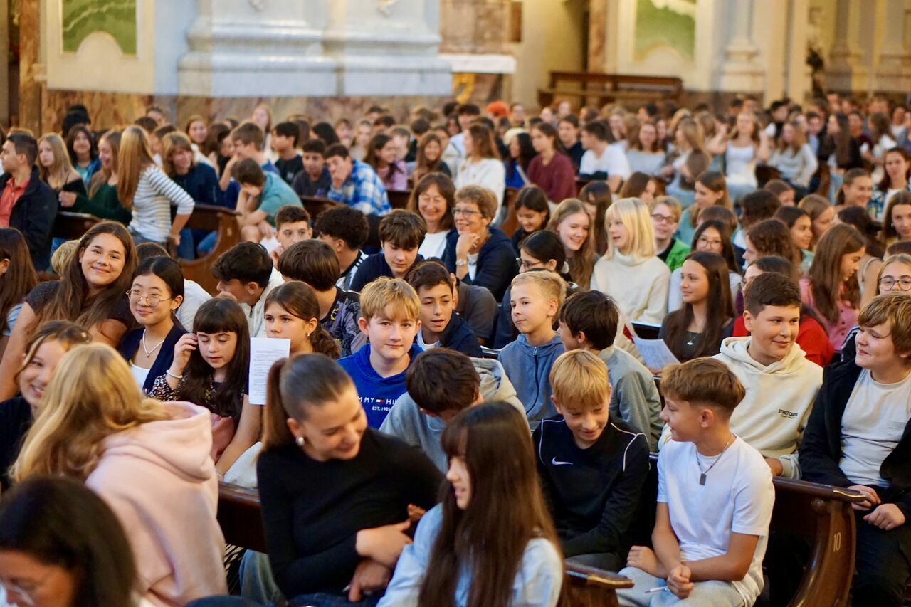 Zu Beginn des Gottesdienstes wurden alle Anwesenden herzlich willkommen geheißen. Mit dem Lied „Ich lobe meinen Gott“ stimmte die Schulgemeinschaft gemeinsam in die Feier ein und eröffnete den Gottesdienst musikalisch.
