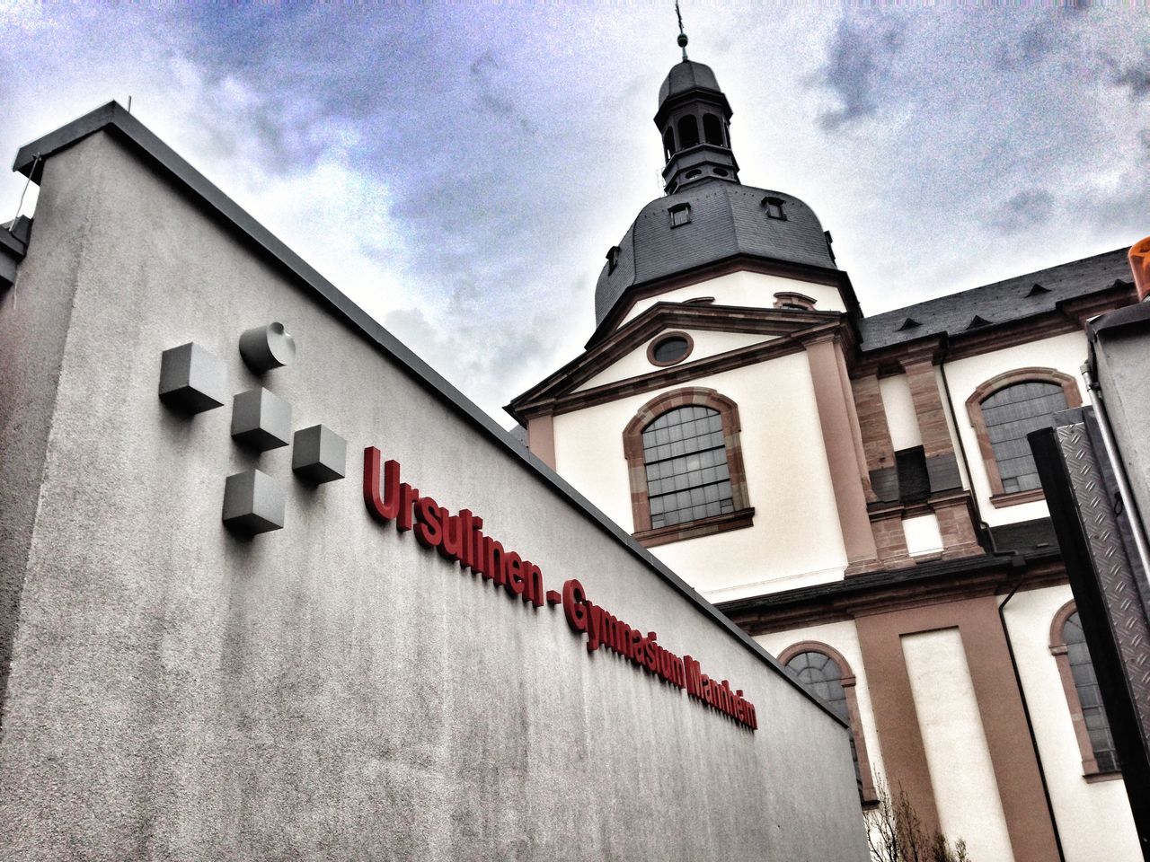 Das Schulgelände des Ursulinen-Gymnasiums besteht aus mehreren Schulhäusern, die durch einen eigenen Schulgarten miteinander verbunden sind. Somit kann der Blick, trotz zentraler Lage inmitten der Mannheimer Quadrate, ins Grüne schweifen. Zum Schulgelände gehört neben zwei Schulhöfen auch eine Kapelle, in der kleinere schulinterne Gottesdienste und Andachten stattfinden können.