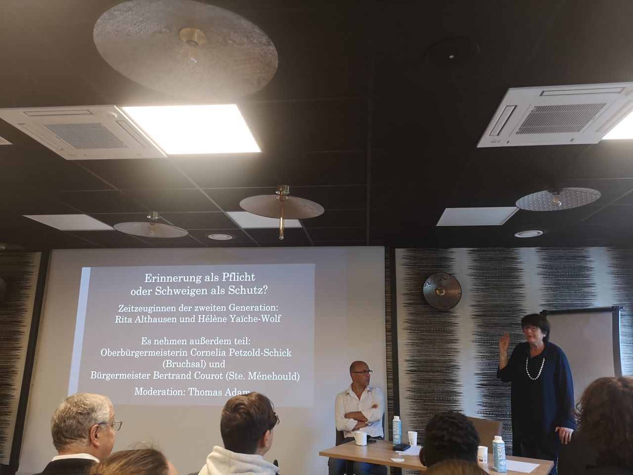 Tags darauf hatten wir die Möglichkeit, ein Zeitzeugengespräch in zweiter Generation zu führen. Dabei erzählte die Mannheimerin Rita Althausen die herzberührende Geschichte ihres Vaters, welcher zu den zehn Menschen gehörte, die aus dem Lager in Gurs flüchten konnten. In dem Gespräch kristallisierte sich ganz klar ein Fazit heraus: WIR DÜRFEN NICHT SCHWEIGEN! Wir dürfen nicht vergessen, aber vor allem darf sich die Geschichte nicht wiederholen. Es ist an uns, dies zu verhindern! Jeder sollte seinen Teil beitragen, denn das zukünftige Schicksal wird von uns allen getragen und wir haben es in der Hand.