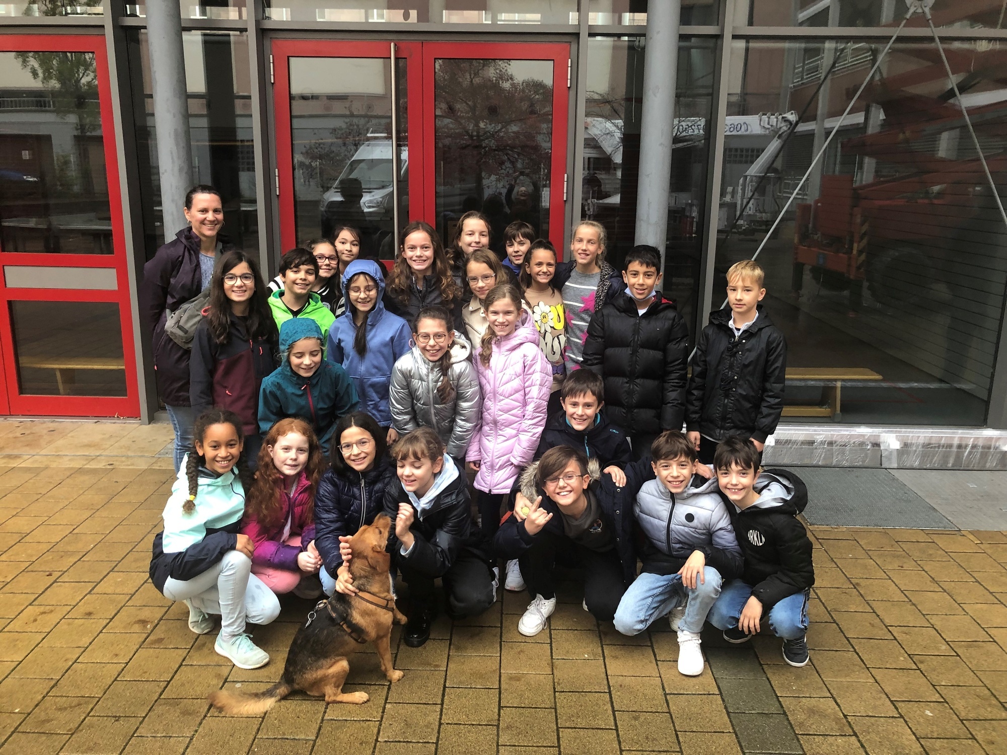 Zum krönenden Abschluss gingen wir alle (natürlich auch mit unserer Biolehrerin Frau Schwitalla) raus auf den kleinen Schulhof, in den Regen. Doch der Regen störte niemanden! Uns wurde angeboten, Lula einen Ball zu werfen, um dann zu schauen, wer schneller wieder beim Ball war: Mensch oder Hund? Natürlich gewann der Hund das Duell! Dass Lula besonders schnell ist, liegt darin begründet, dass in ihrer Mischung u.a. ein Jagdhund steckt und Hunde Zehengänger sind. Leider mussten wir uns bald danach von der süßen Lula und ihrer Besitzerin verabschieden.