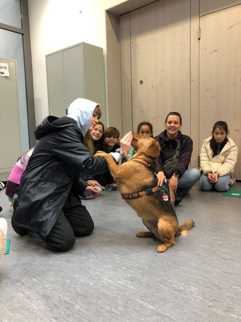 Jedem Kind gefiel diese Doppelstunde sehr! Auch die älteren Schüler im Foyer waren sehr an Lula interessiert.