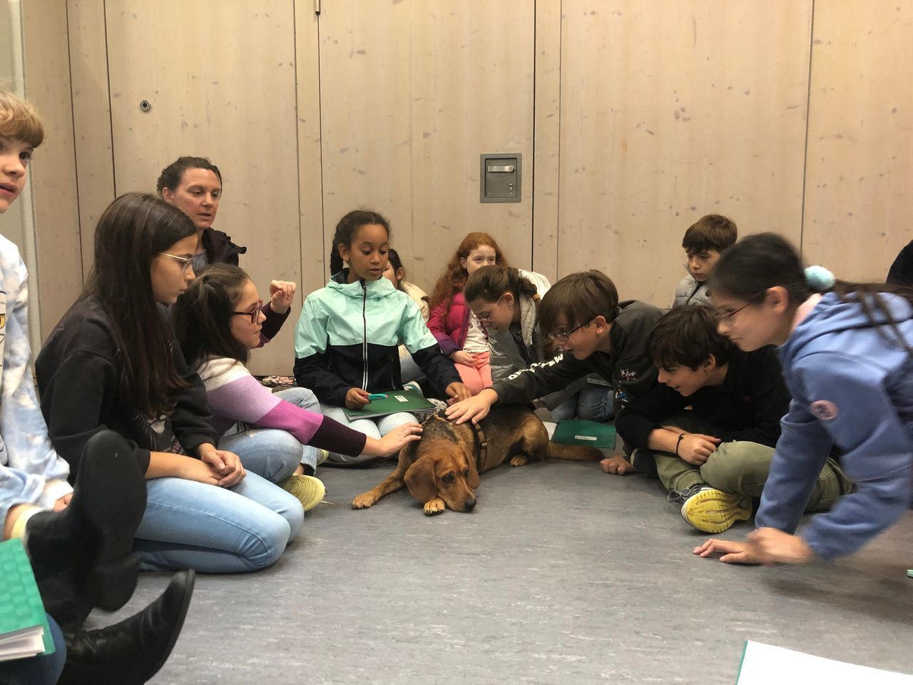 Am Freitag, dem 21. Oktober 2022, waren die zwei Bio-Stunden ganz besonders cool und vor allem außergewöhnlich!Uns besuchte nämlich der Mischlings-Hund Lula unserer Klassenkameradin Sofia. Ihre Mutter brachte Lula ins Foyer, wo auch schon die ganze Klasse wartete. Sie gab uns die Gelegenheit viele Fragen zu dem Thema Hunde stellen zu können. Es war sehr hilfreich und interessant! Besonders toll fanden viele, dass wir die 2-jährige Hündin streicheln und mit ihr spielen durften!